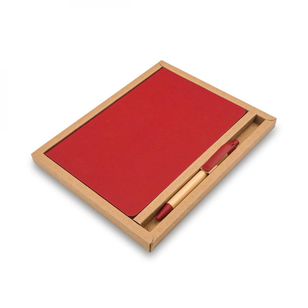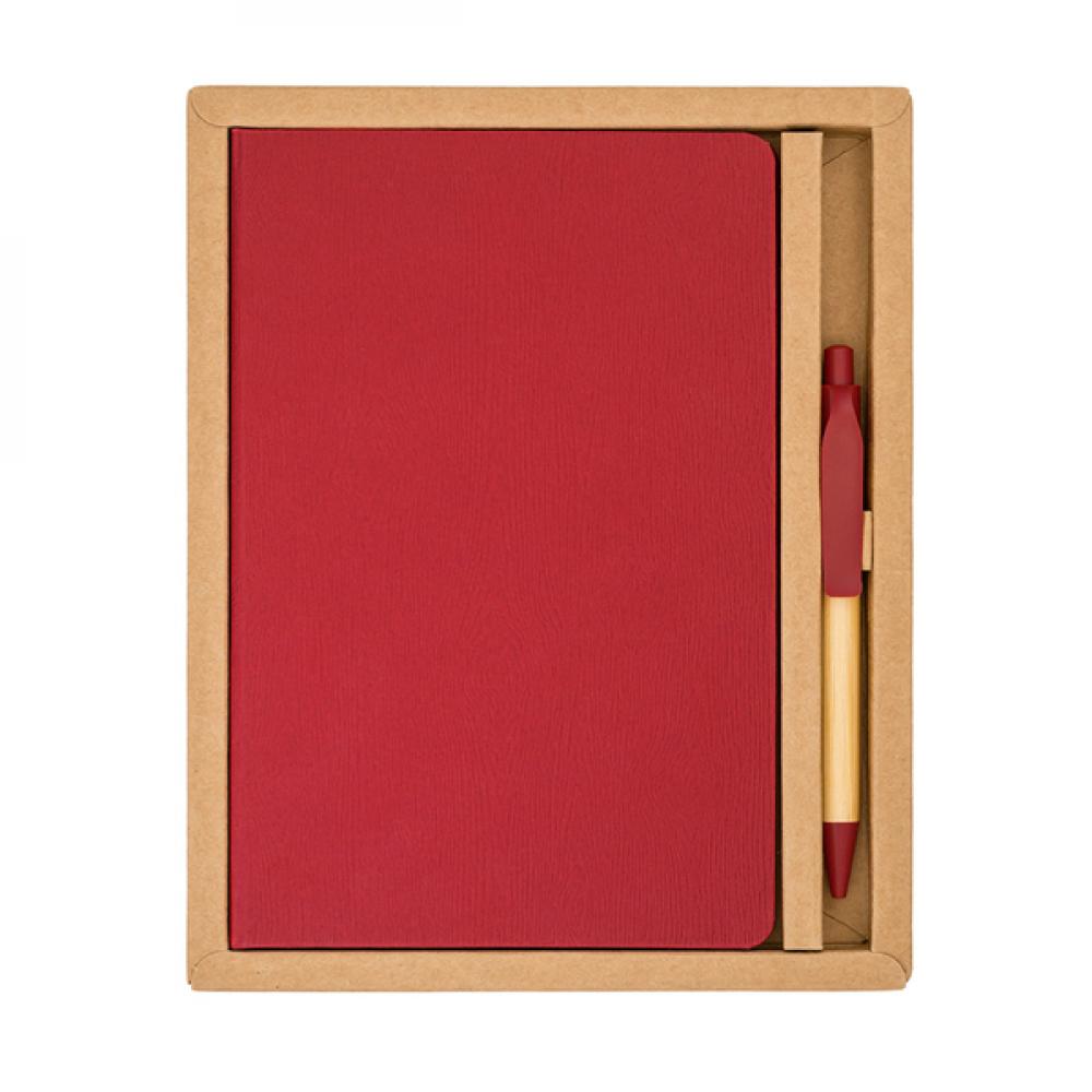 Набор состоит из линейной тетради формата А5 и ручки. Твердая обложка тетради имеет лямку для отметки последней использованной страницы и резинку для закрытия в нерабочем состоянии. 80 листов, кремового цвета (бумага 70 г/м2). Ручка из бамбука с синим стержнем. Набор упакован в коричневую коробку.