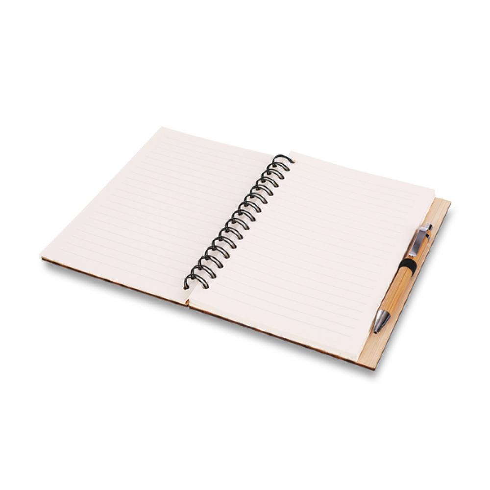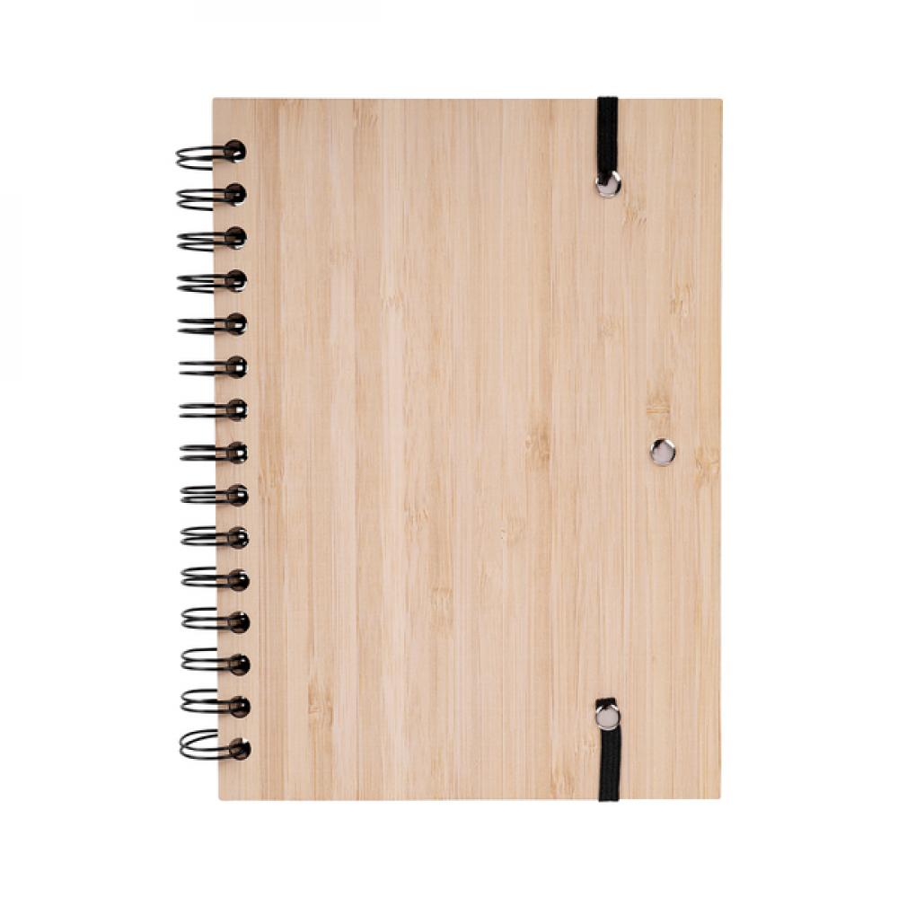 Набор из бамбуковой продукции в подарочной коробке. Включает в себя блокнот формата A5 (70 линованных листов, 80 г/м2), шариковую ручку с черным стержнем, брелок и органайзер для кабелей с функцией подставки для телефона.