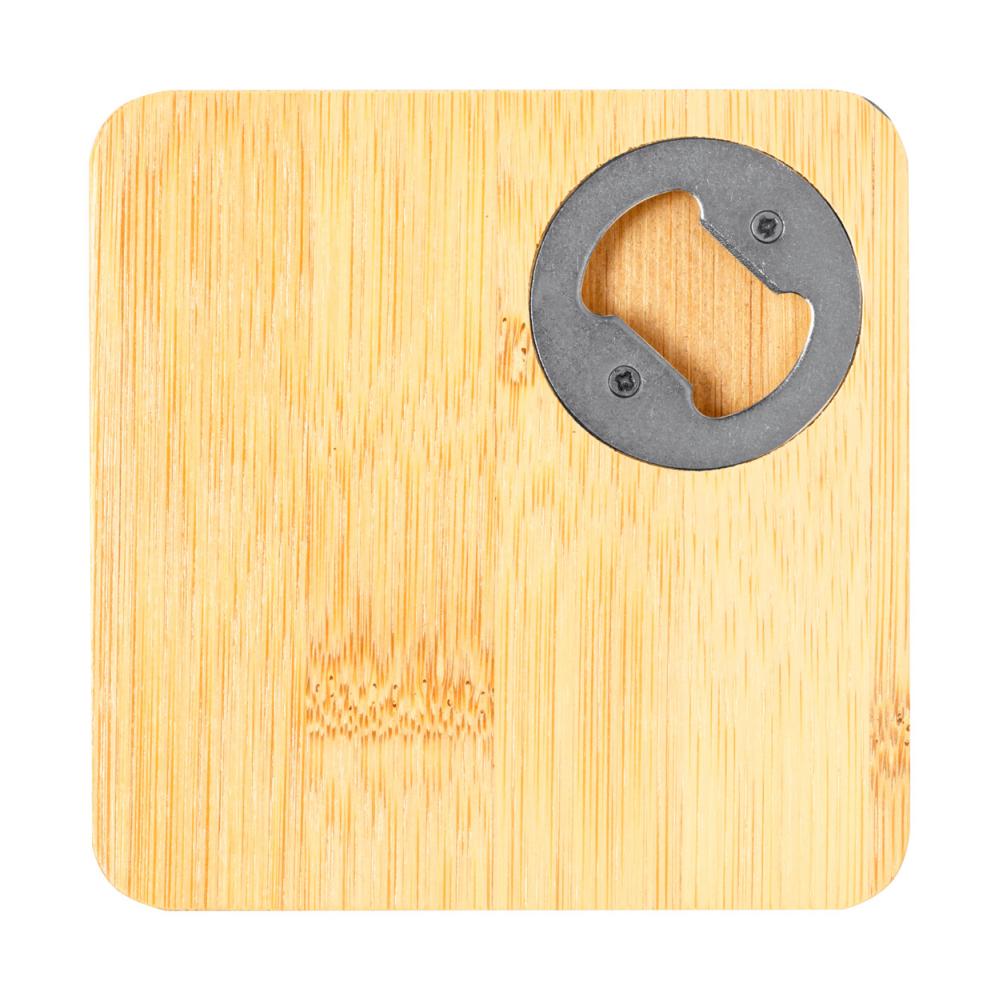 Бамбуковая подставка для стакана с открывашкой для бутылок.