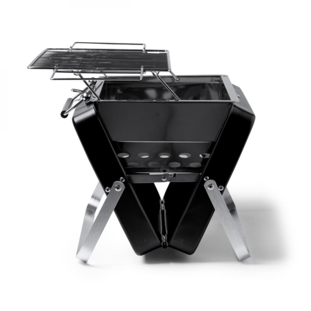 Переносной угольный гриль из нержавеющей стали. Складывается в формат портфеля с раскладной решеткой. Поставляется в экологический дизайнерский короб с ручкой для переноски.
