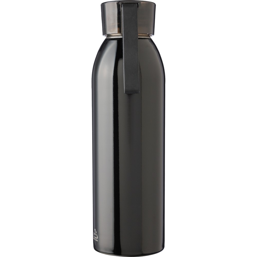 Спортивная бутылка объемом 650 мл, изготовленная из переработанной нержавеющей стали, имеет однослойную конструкцию, силиконовую ручку для удобства переноски, включает в себя значок из переработанной нержавеющей стали на изделии, упакована в коричневую картонную коробку.