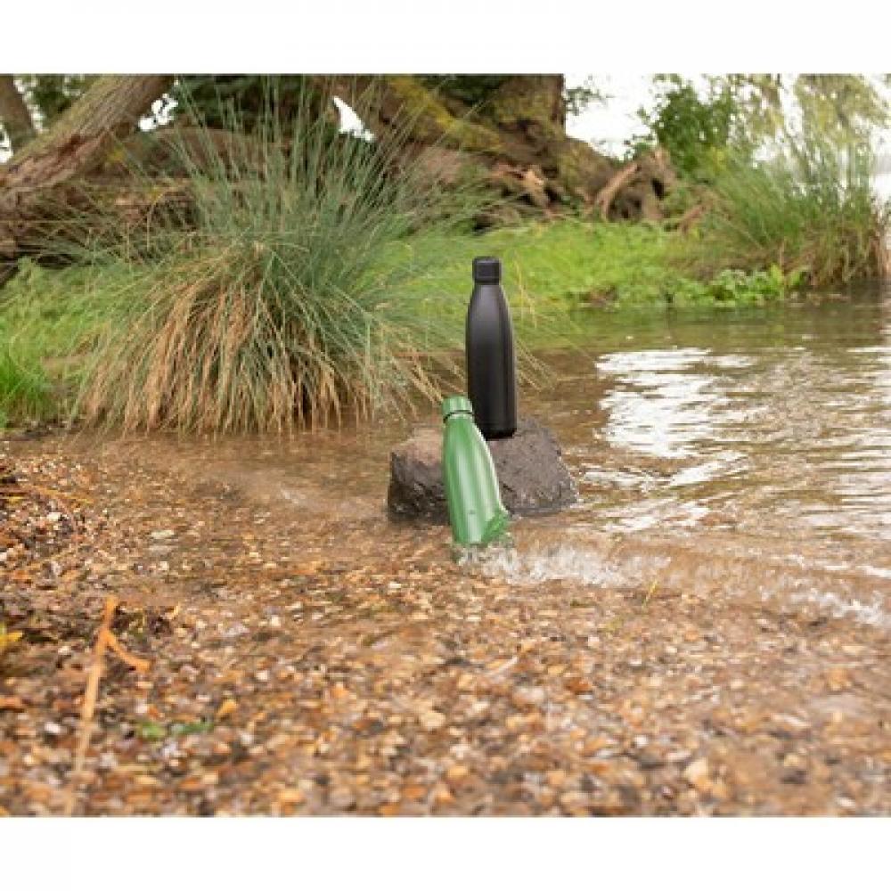 Спортивная бутылка объемом 500 мл, изготовленная из нержавеющей стали, с двойными стенками и матовым покрытием.