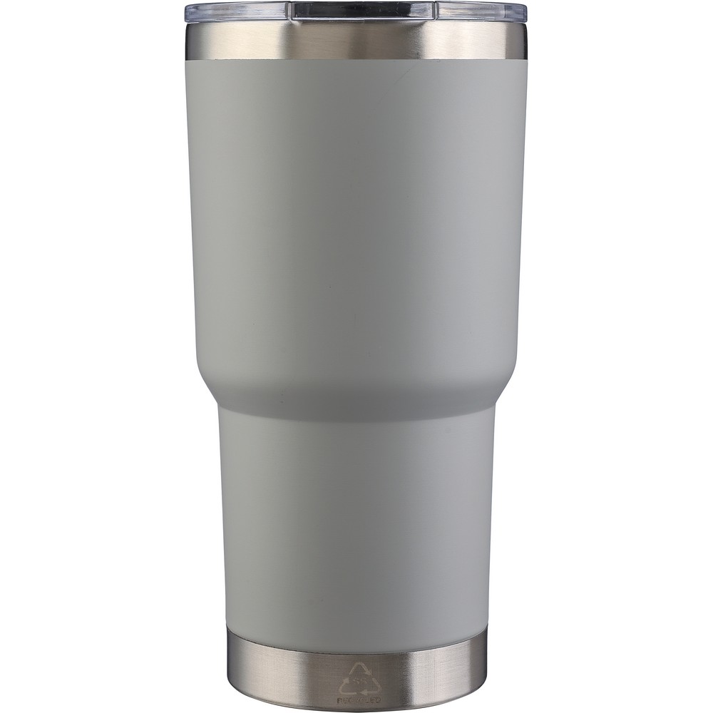 Термокружка объемом 590 мл изготовлена из переработанной нержавеющей стали с двойными стенками, которые замедляют выделение температуры в окружающую среду. Пластиковая крышка с замком обеспечивает удобное одноручное использование. Упакована в коричневую картонную коробку.