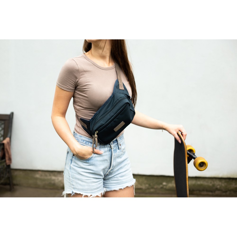Поясная сумка B'RIGHT, изготовленная из RPET, сертификат GRS (Глобальный стандарт переработки), 1 основное отделение и 1 передний карман на молнии, сетчатый карман на молнии внутри.