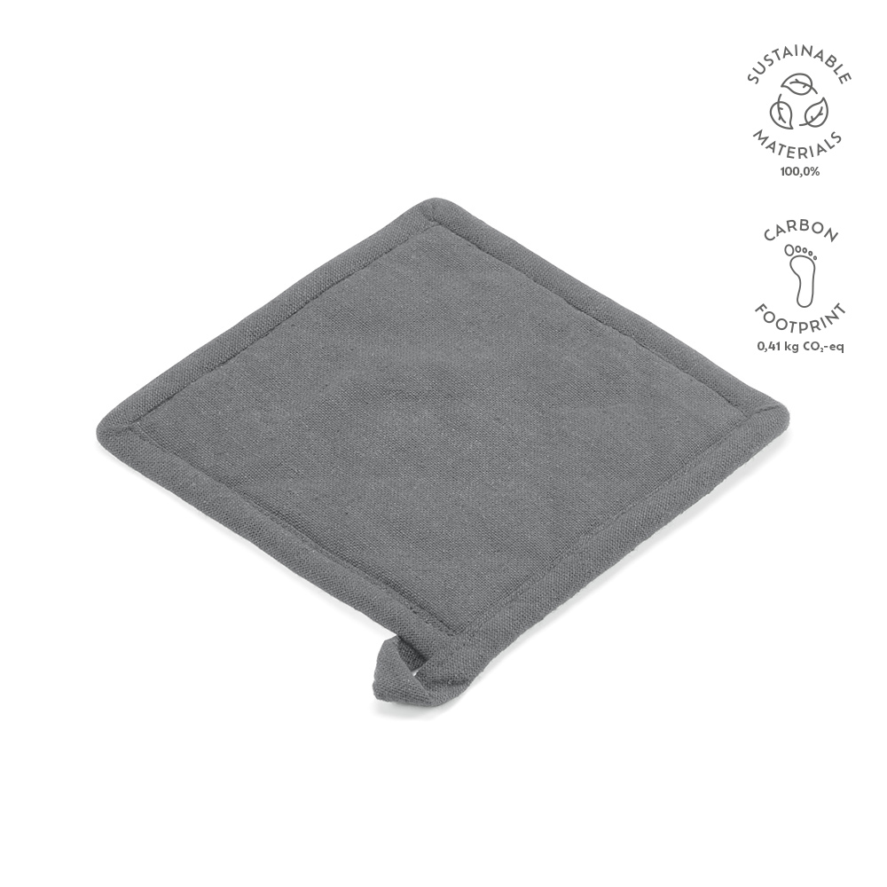 Этот прихватка для кастрюль и сковородок из переработанного хлопка плотностью 180 г/м² идеально подходит для кухни. Она оснащена встроенной петлей для подвешивания, что помогает поддерживать порядок на кухне. Упакована в картонную коробку из крафт-картона.
