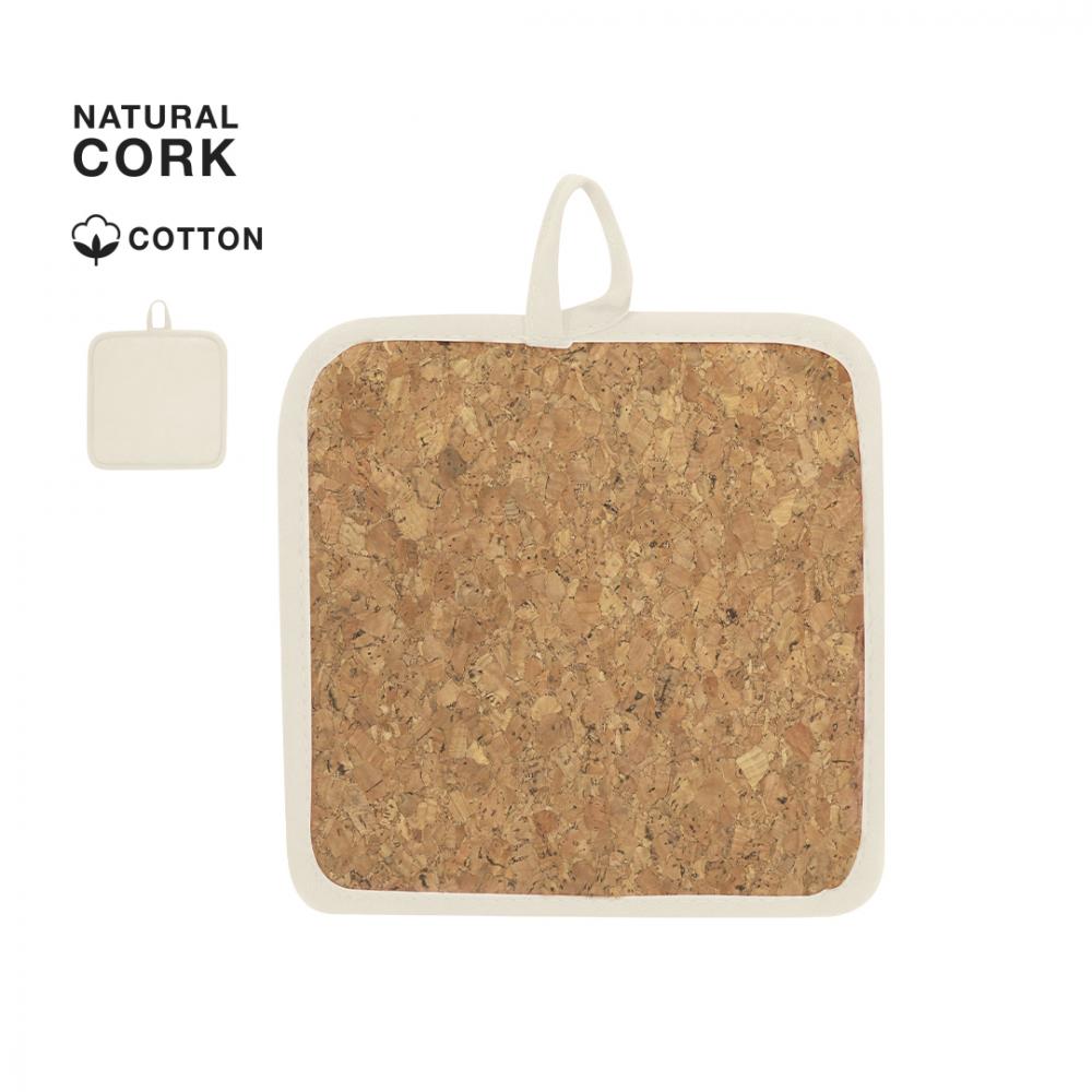 Кухонная прихватка из хлопка и пробки с петлей для подвешивания.