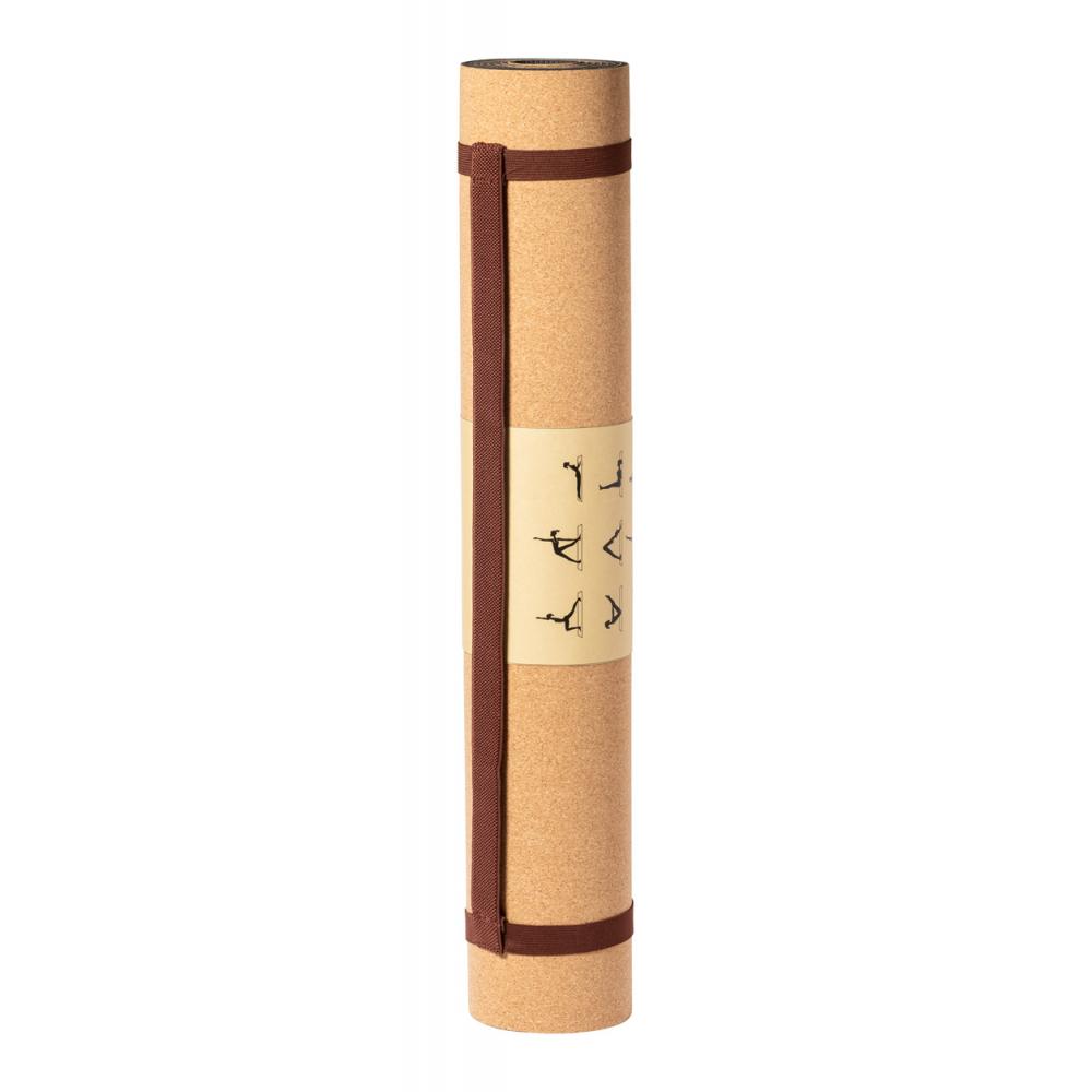 Коврик для йоги из натуральной пробки с чехлом из крафт-бумаги и ремнем для переноски.