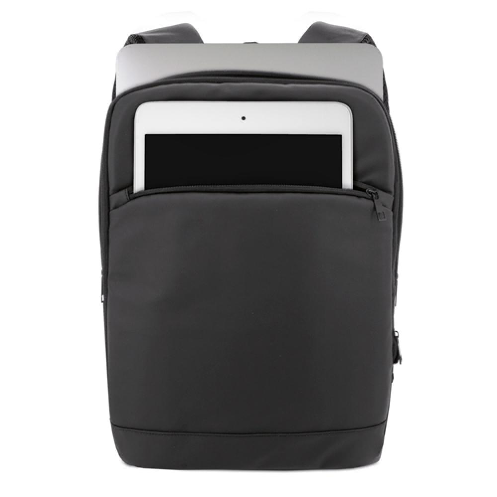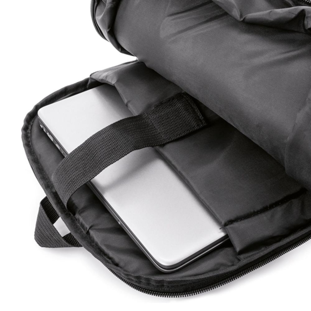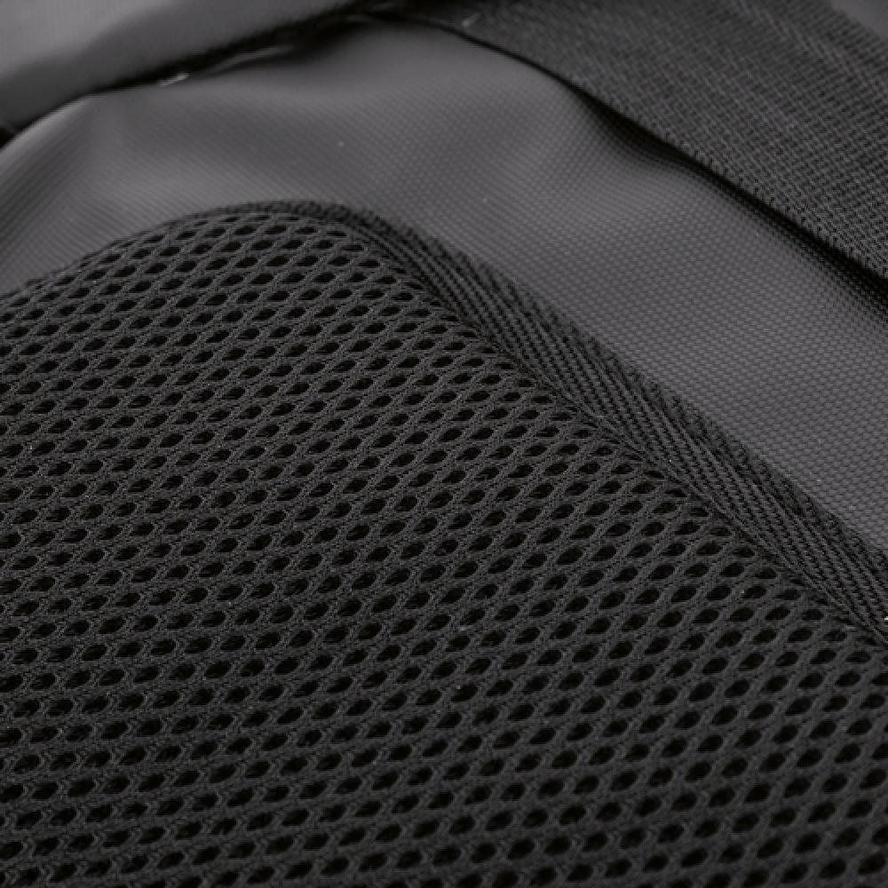 Расширяемый рюкзак, увеличивающий свою грузоподъемность. Поясная поддержка и мягкие лямки. Мягкий внутренний отдел для ноутбука (17"). Эластичное крепление для переноски на тележке.
