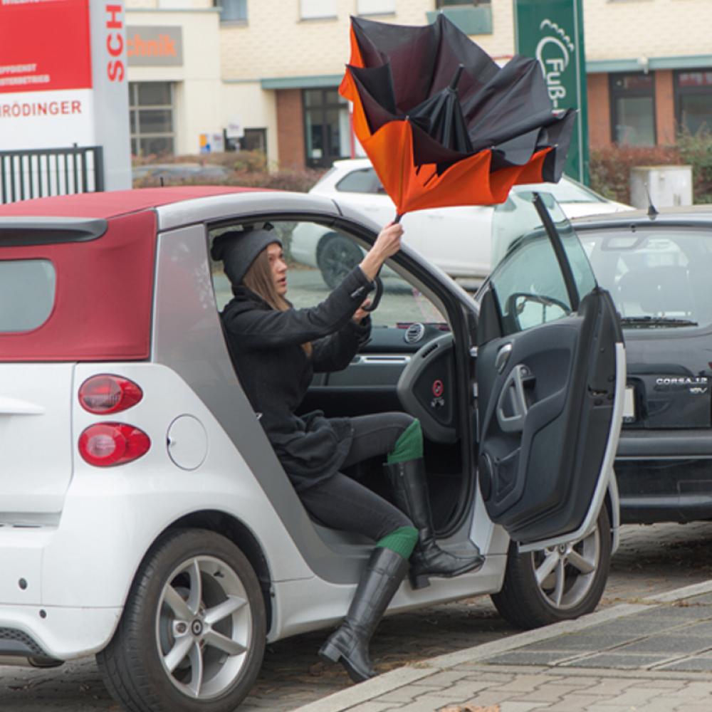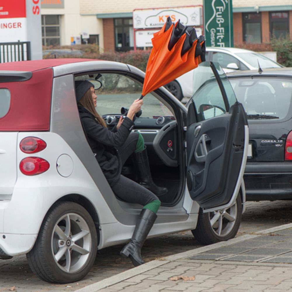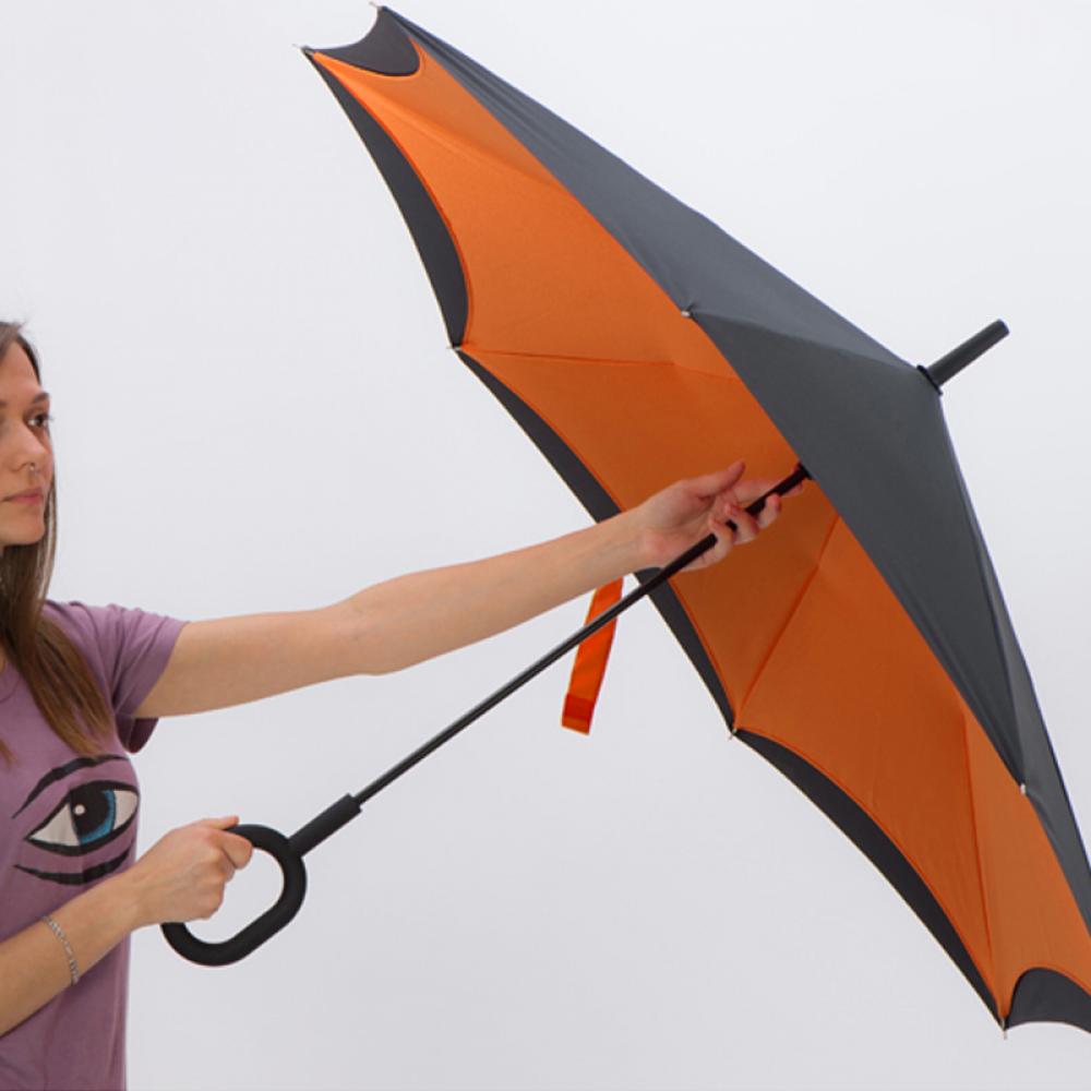 Зонт складной наоборот от традиционных, так что вы можете, например, легко попасть в машину во время дождя. Зонт изготовлен из двойного материала типа pongee 190T.