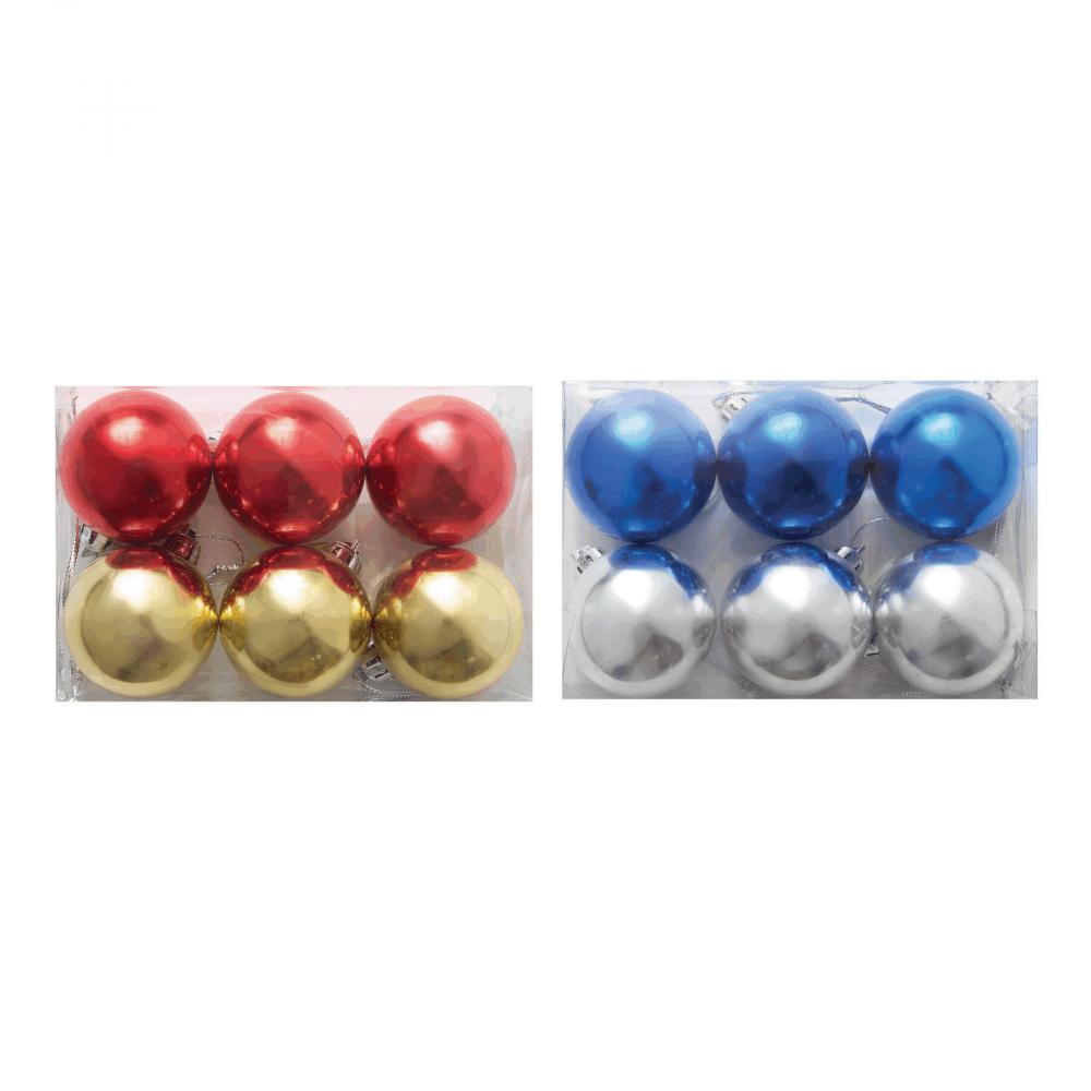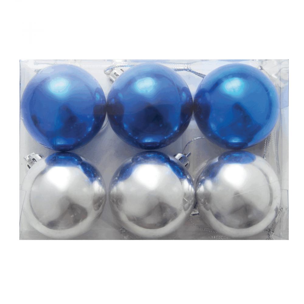 Рождественские украшения XMAS LINE, 6 шаров: 3 шара каждого цвета, с серебряной нитью для подвешивания