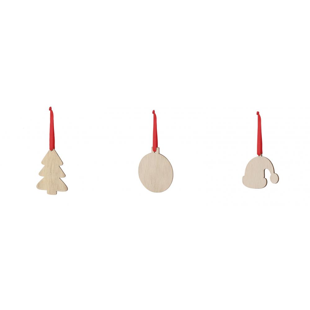 Новогоднее украшение из мягкого натурального дерева. Доступен в нескольких вариантах дизайна: шапка Санты, Рождественская елка и Рождественский бал. В комплект входит петля для подвешивания красного цвета. Специально разработан для сублимационной маркировки.