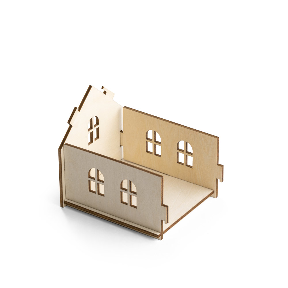 Фанерный декоративный домик в комплекте с веревкой для подвешивания на елку. Может использоваться как подарочная коробка. Продается в разобранном виде. 93 x 114 x 119 мм