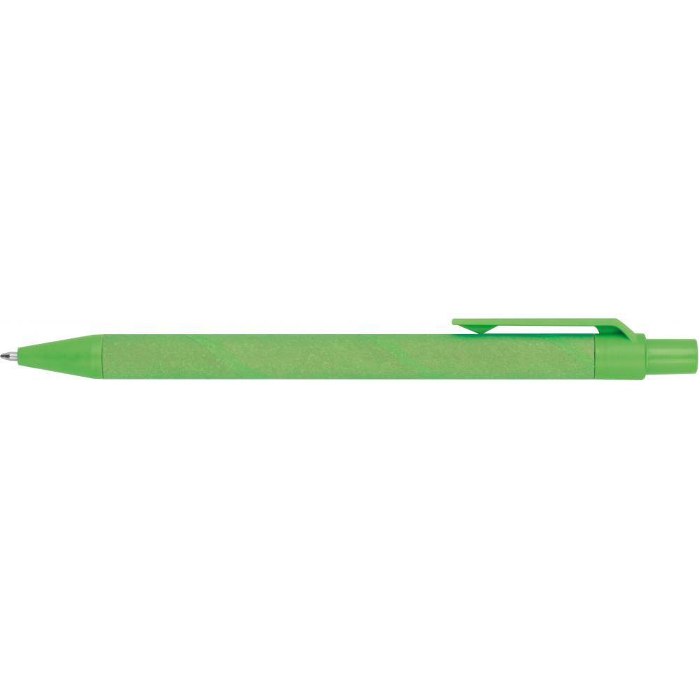 Ручка с синими чернилами из переработанной бумаги, с красочными элементами из кукурузы.