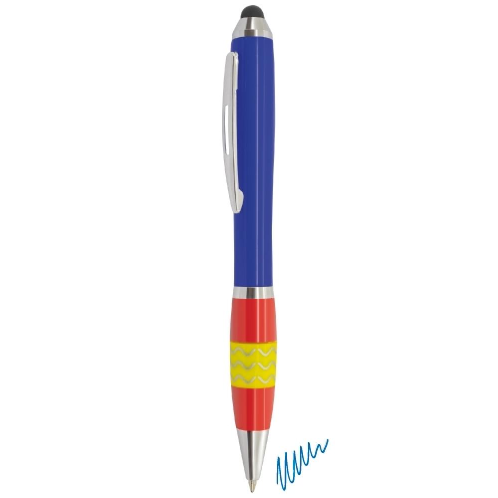 Ручка-антистресс с изображением флагов Испании, Франции и Италии. Синий стержень.