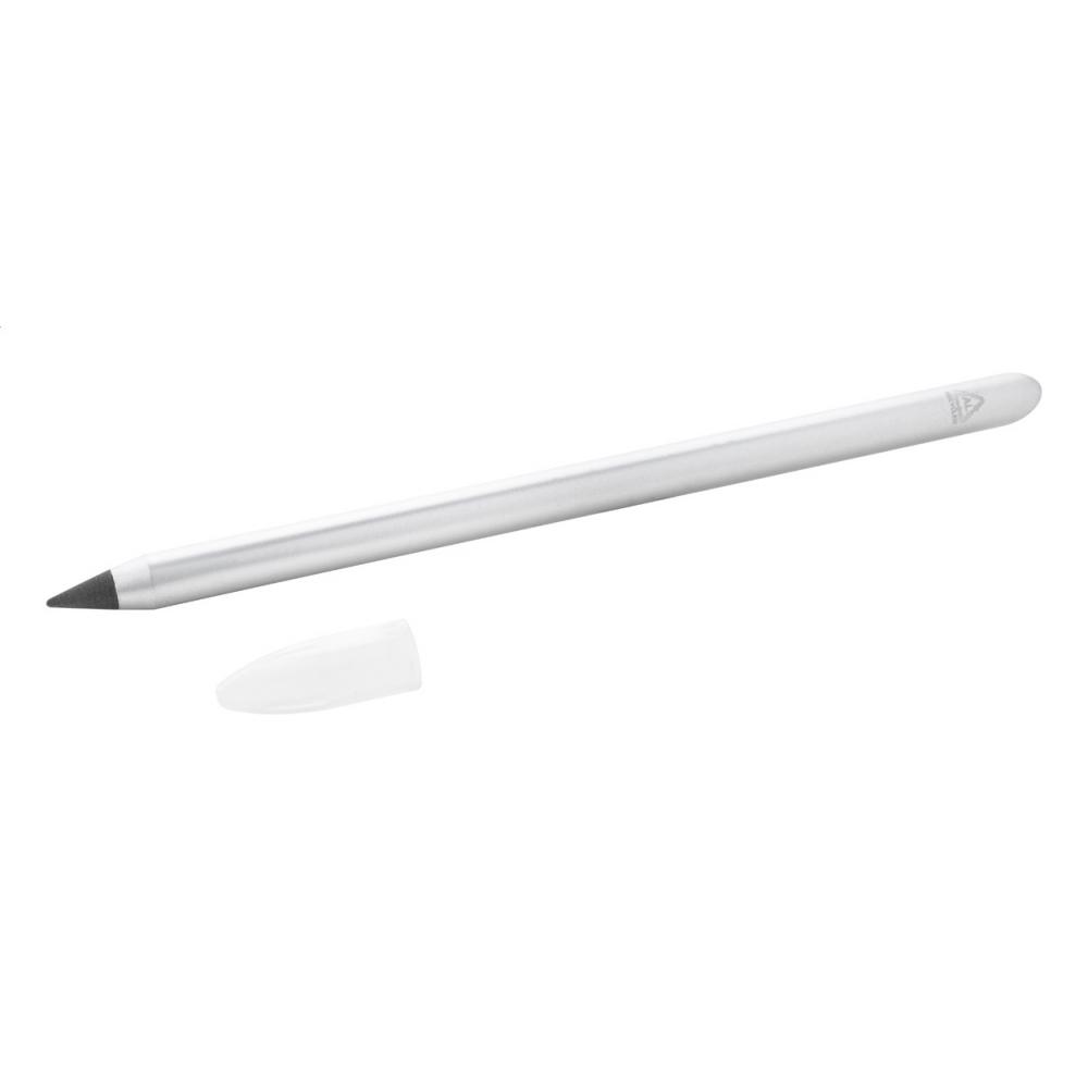Перерабатываемая алюминиевая ручка без чернил с металлическим наконечником, который окисляет бумагу. Эта ручка пишет похоже на карандаш и также можно стереть.
