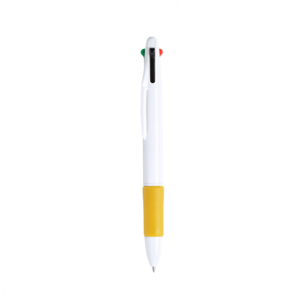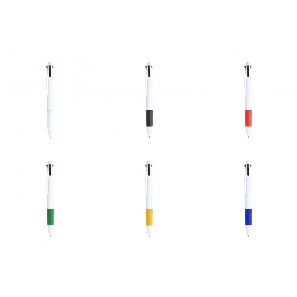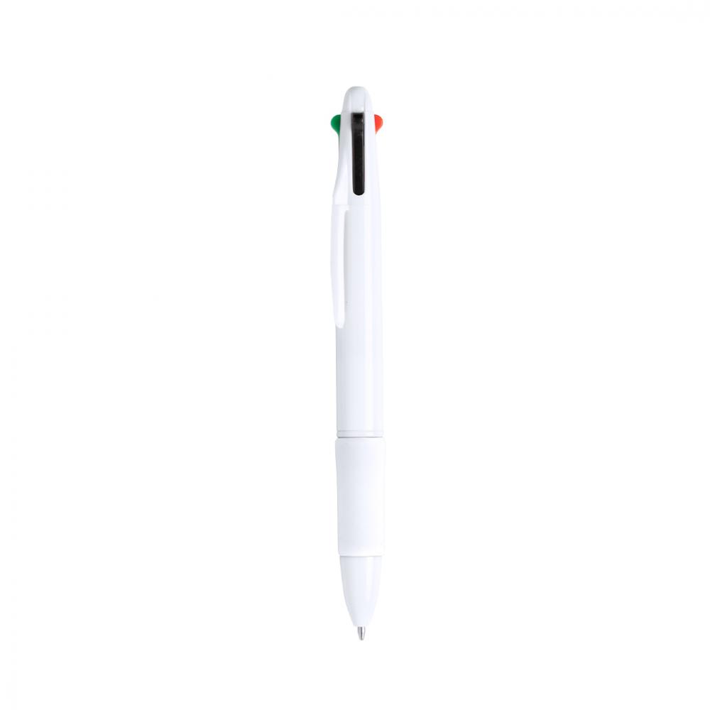 Особенности Шариковая ручка 4-в-1 с выдвижным механизмом отжима, классическим дизайном и однотонным корпусом белого цвета. Мягкая на ощупь, цветная ручка в ярких тонах. 4 картриджа с синими, красными, черными и зелеными чернилами. 4 Цвета Чернил