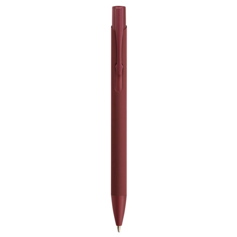 Ручка с мягким текстурным эффектом, резиновый цветной корпус, металлический зажим в подходящем цвете. Украшения на ручке соответствуют цвету. Синий стержень.