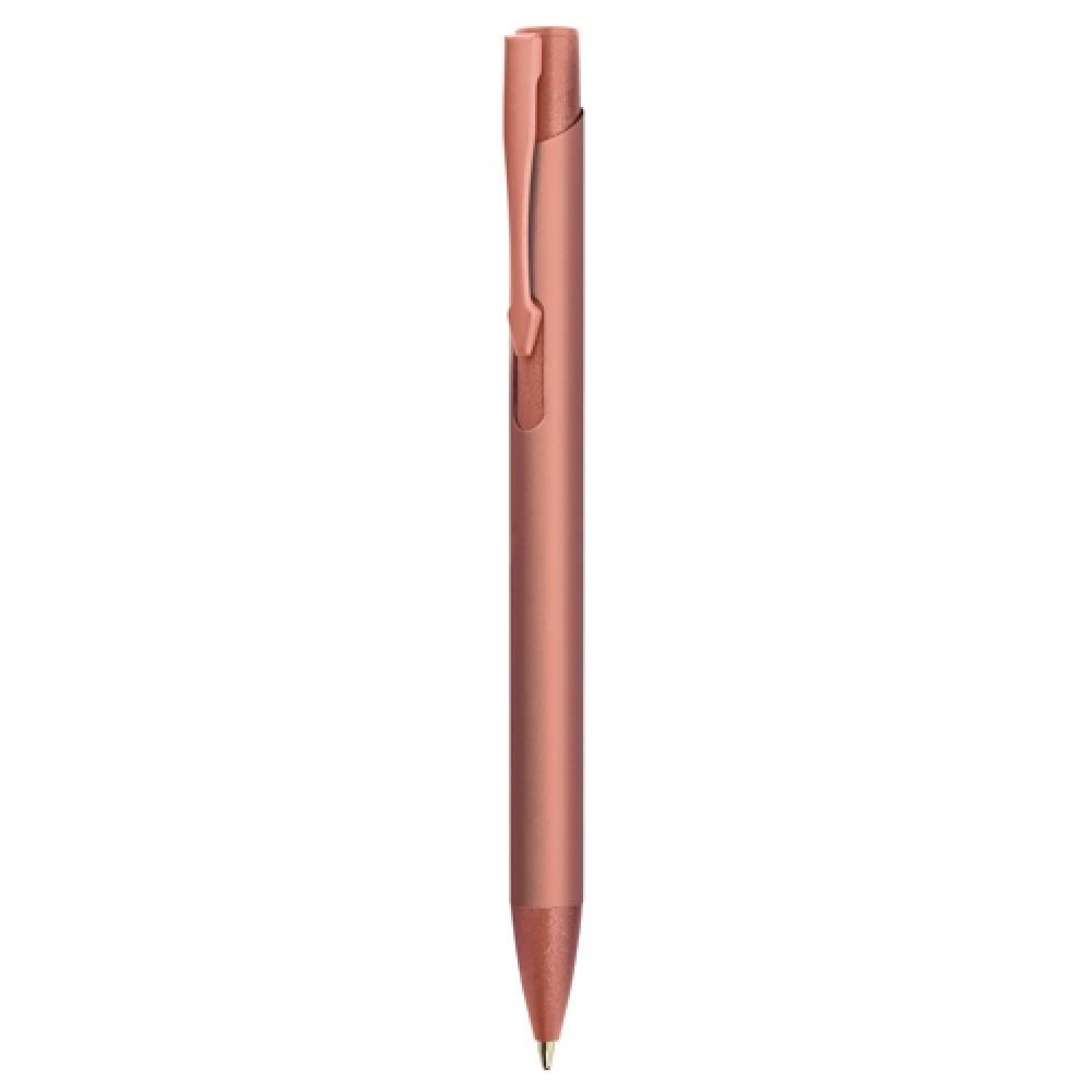 Ручка с мягким текстурным эффектом, резиновый цветной корпус, металлический зажим в подходящем цвете. Украшения на ручке соответствуют цвету. Синий стержень.