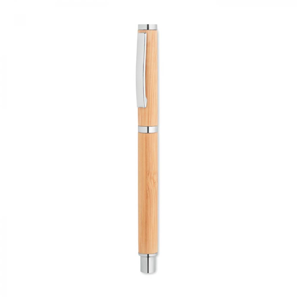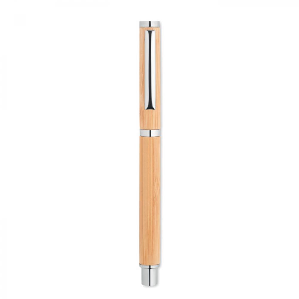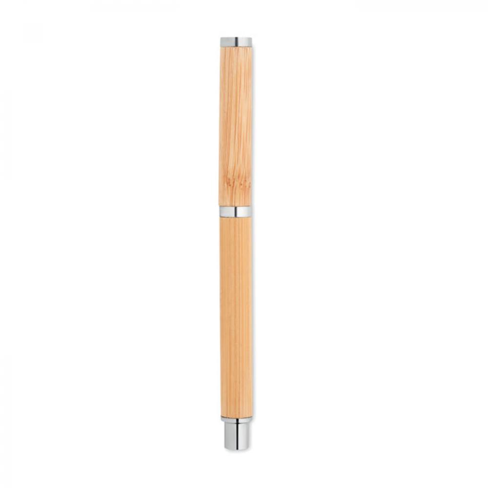 Шариковая ручка-роллер с бамбуковым корпусом и фурнитурой из нержавеющей стали. Синие гелевые чернила. Делайте заметки во время важных встреч с помощью этой гелевой ручки. Экологичный и натуральный бамбуковый материал придает ей современный и стильный вид. FSC®-certified | FSC 100%, N10, FSC-C213206
