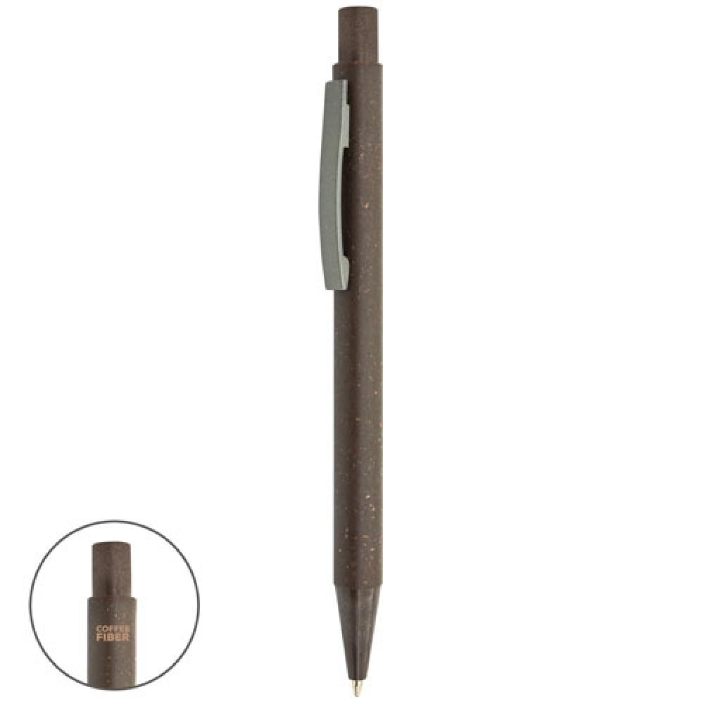 Экологичная ручка, изготовленная из кофейной гущи и ABS, создающая прочное и биоразлагаемое волокно. Синяя чернила.