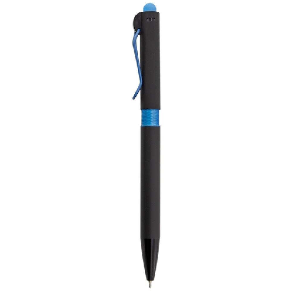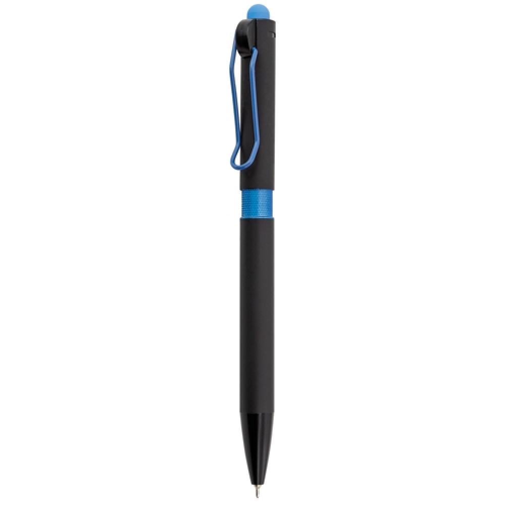 Ручка с мягким текстурным эффектом, черное резиновое корпус, металлический зажим и цветное нажатие. Синий стержень. Доступна в широком ассортименте цветов.