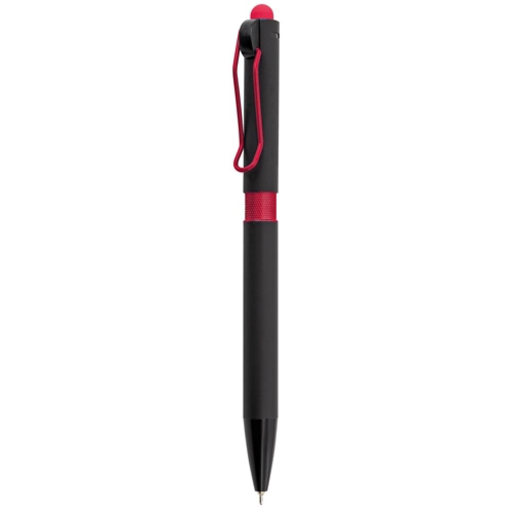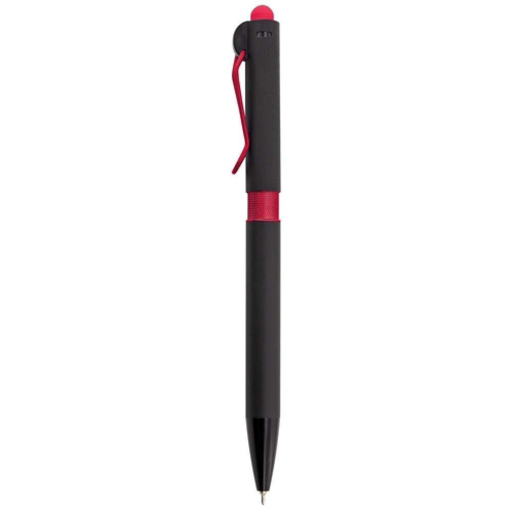 Ручка с мягким текстурным эффектом, черное резиновое корпус, металлический зажим и цветное нажатие. Синий стержень. Доступна в широком ассортименте цветов.