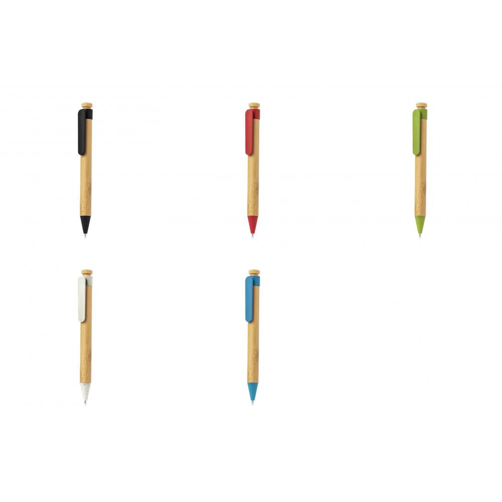 Характеристики Шариковая ручка с механизмом нажатия, изготовленная из бамбука и пшеничной соломы. Бамбуковый корпус с соответствующими аксессуарами из пшеничной соломы. Оригинальный клип XL размера, доступный в широкой цветовой гамме. Крупный картридж и синяя чернила. Материалы, такие как бамбук, способствуют использованию натуральных сырьевых материалов, что снижает выбросы загрязняющих веществ. Он происходит из высокоустойчивого и универсального растения, с быстрым ростом и регенерацией, что делает его отличной альтернативой использованию традиционного дерева. Крупный картридж Бамбук/ Пшеничная солома/ ABS