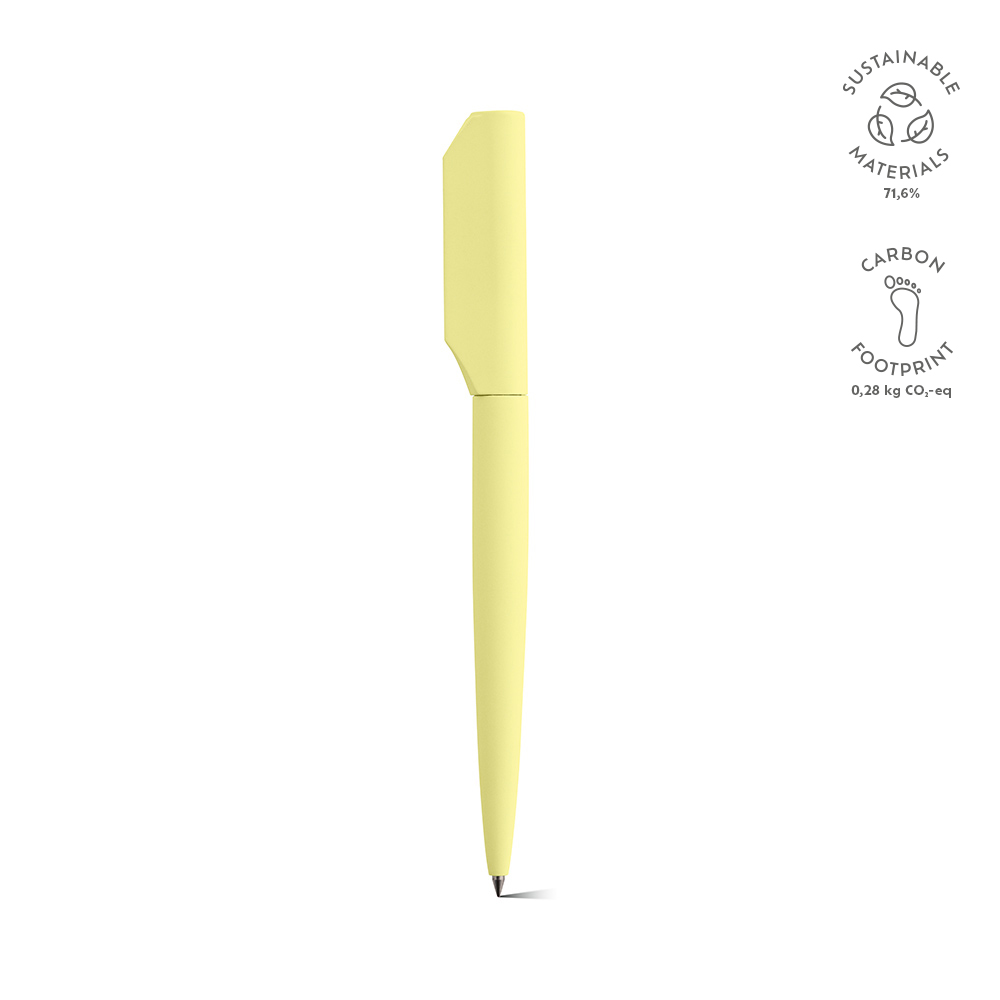 Симфония устойчивости и стиля, наша ручка обладает корпусом из переработанного алюминия и верхней частью из переработанного ABS. Вращающаяся система подачи черных чернил и уникальный дизайн верхней части придают современный вид, все это изящно представлено в индивидуальной упаковке из переработанного материала.