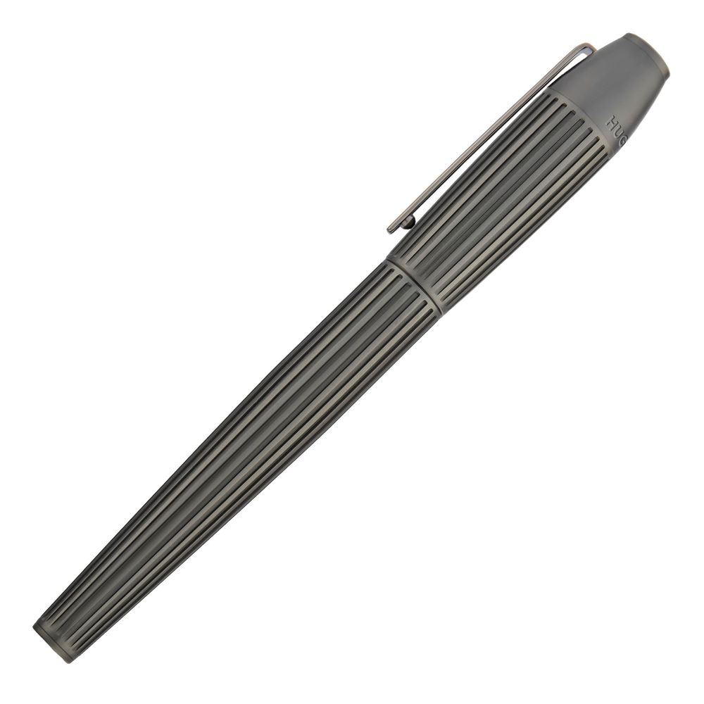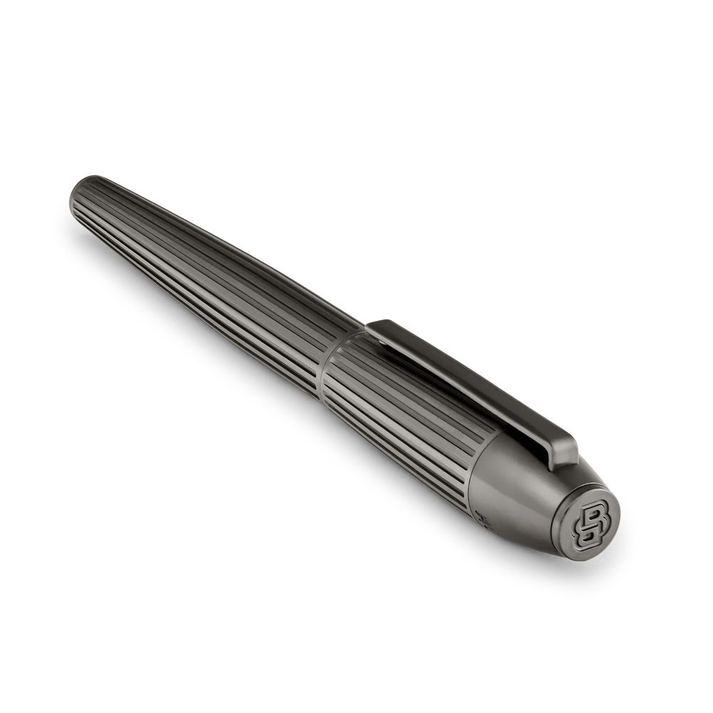 Эта форма идеально сочетает в себе прочность и элегантность, с глубоким, крупным узором в полоску. Покрытый роскошным матовым оттенком оружейного металла, этот предмет излучает минималистичное, но в то же время сложное и утонченное ощущение. Тщательная работа мастеров и тонкие детали делают его одновременно ценным и сдержанным. Дизайн демонстрирует смелую современную эстетику, создавая впечатляющий инструмент для письма.