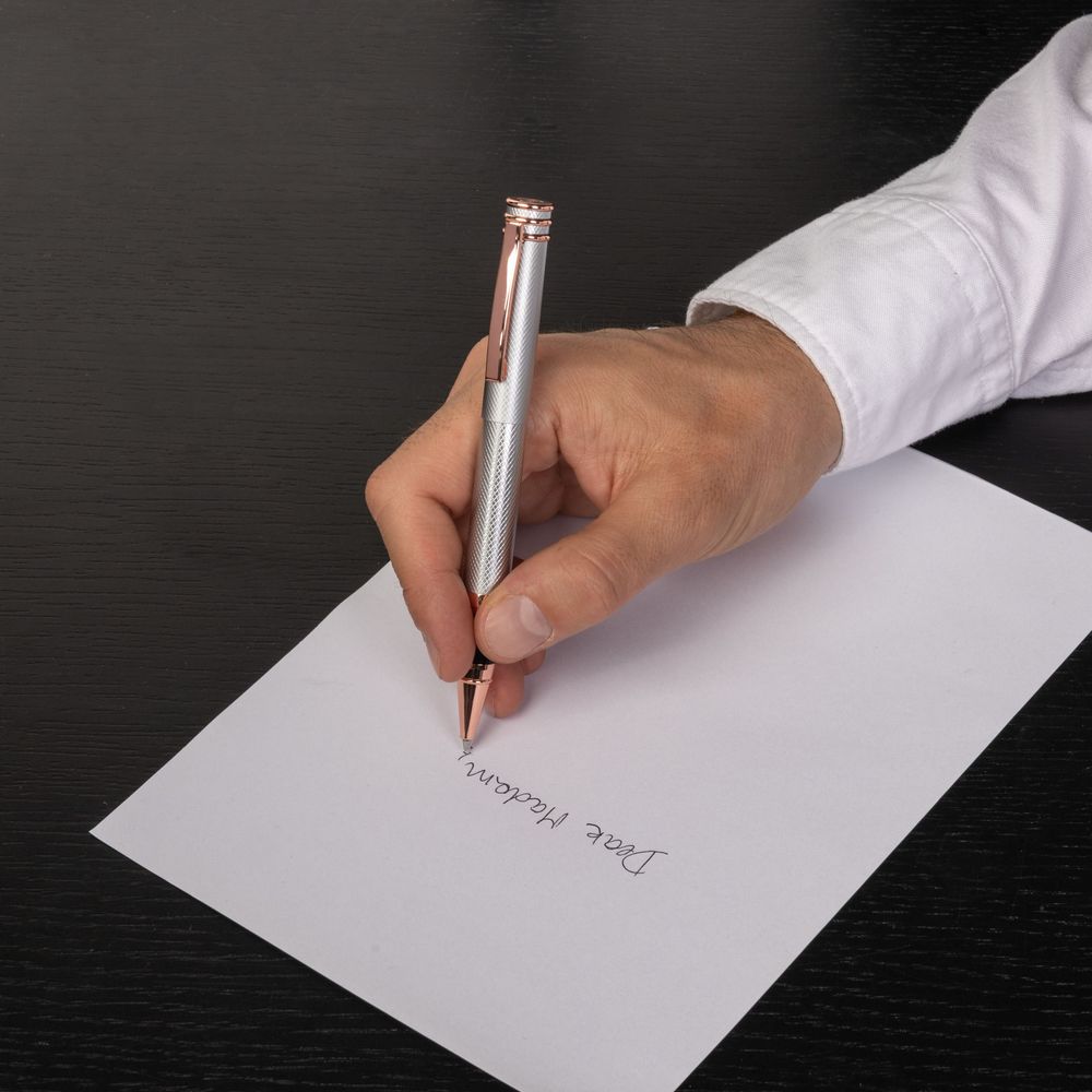 Ручка "Austin" создана на основе одного из самых знаковых силуэтов Cerruti: кольцевого верха. В этой новой версии мы используем поверхность с гравировкой в виде алмазной огранки, украшенную изысканными металлическими элементами. Хромированная версия украшена элементами из розового золота, что создает одновременно винтажное и современное ощущение.