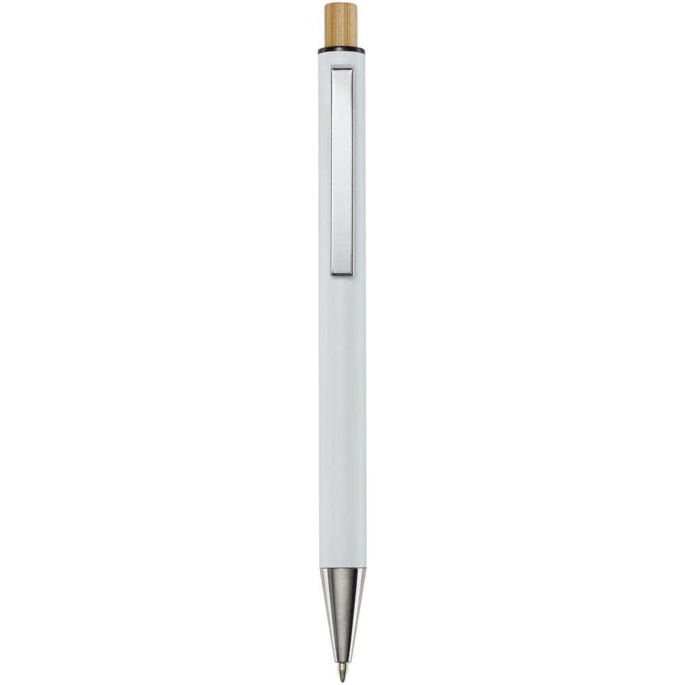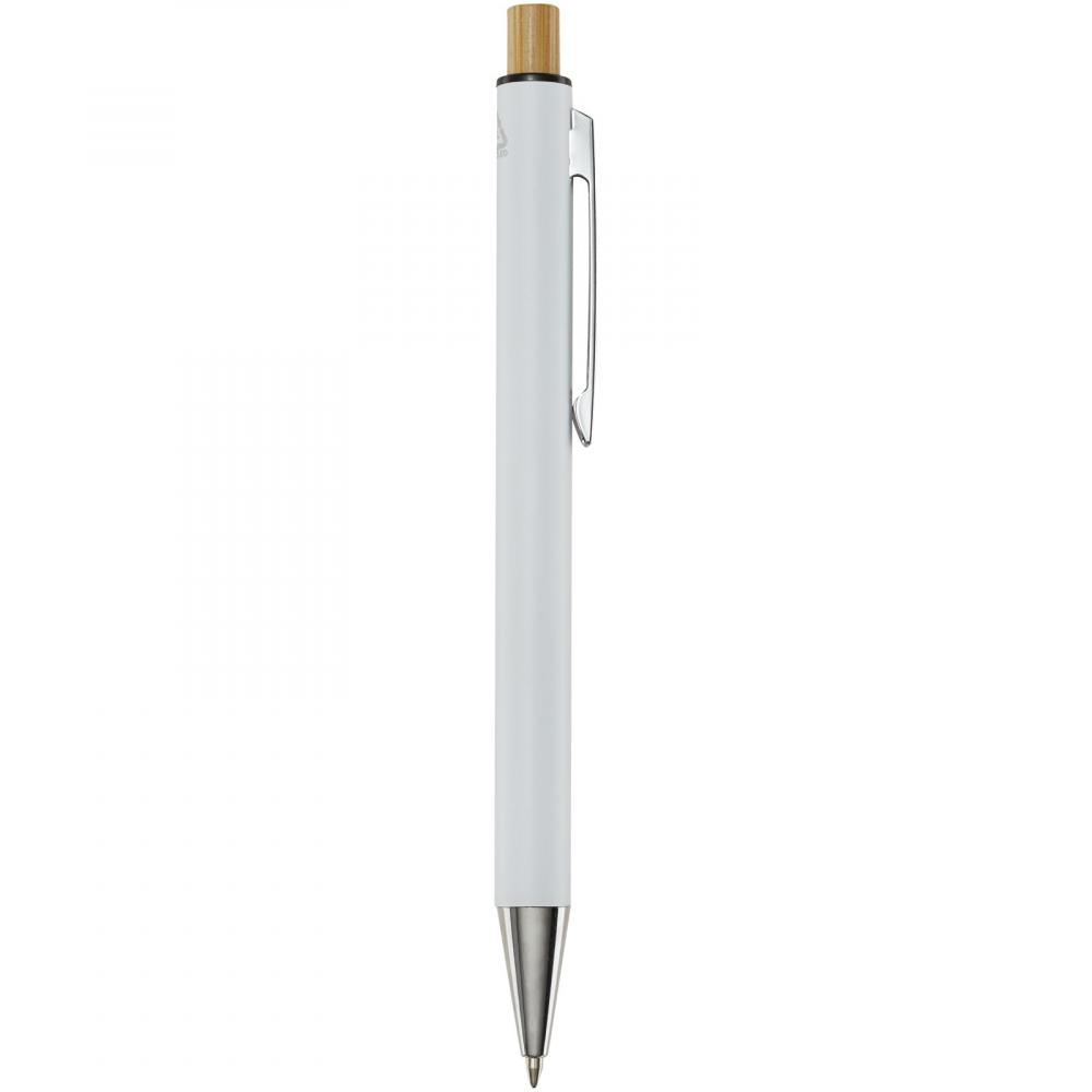 Ручка-роллер Cyrus изготовлена из переработанного алюминия, что требует меньше энергии по сравнению с производством алюминия из сырья. Это также уменьшает количество отходов на свалках и помогает сохранять природные ресурсы, стремясь сократить выбросы парниковых газов. Кнопка выполнена из бамбука. Цвет чернил: синий. Длина письма: 800 метров. Размер пера: 1,00 мм.