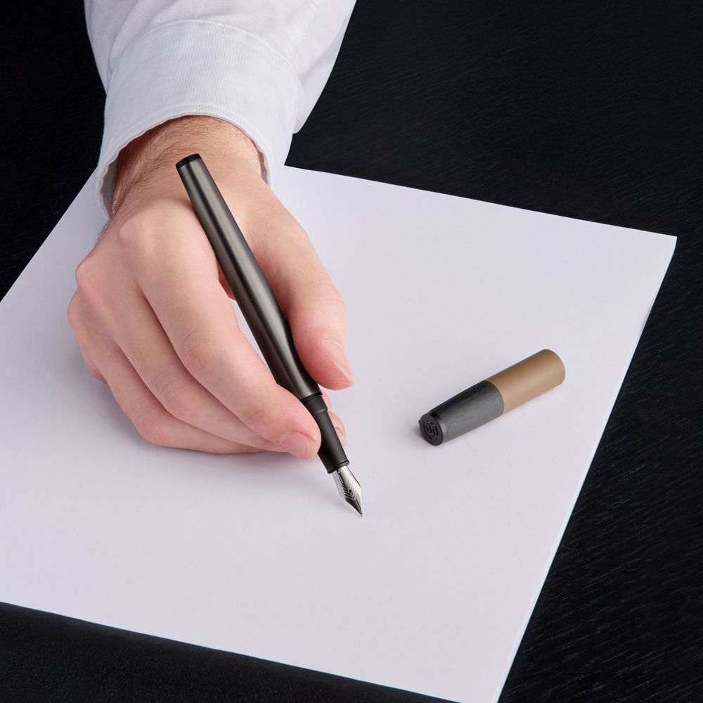 Наша коллекция Gear — это самая знаковая серия пишущих инструментов. В этом сезоне она возвращается в совершенно неожиданном исполнении: три пишущих инструмента — шариковая ручка, перьевая ручка и роллер — сочетаются друг с другом, каждый из которых имеет три различных текстуры: глубокий черный с эффектом браширования, элегантный матовый цвет "пистолетный металл" и резиновый лак в культовом цвете "верблюжий". Пропорции каждого элемента гармонируют друг с другом, создавая простое, но по-настоящему неожиданное издание этого популярного силуэта. Логотип с двойной буквой B, выгравированный на верхушке, придает этим изделиям идеальный, завершенный вид.