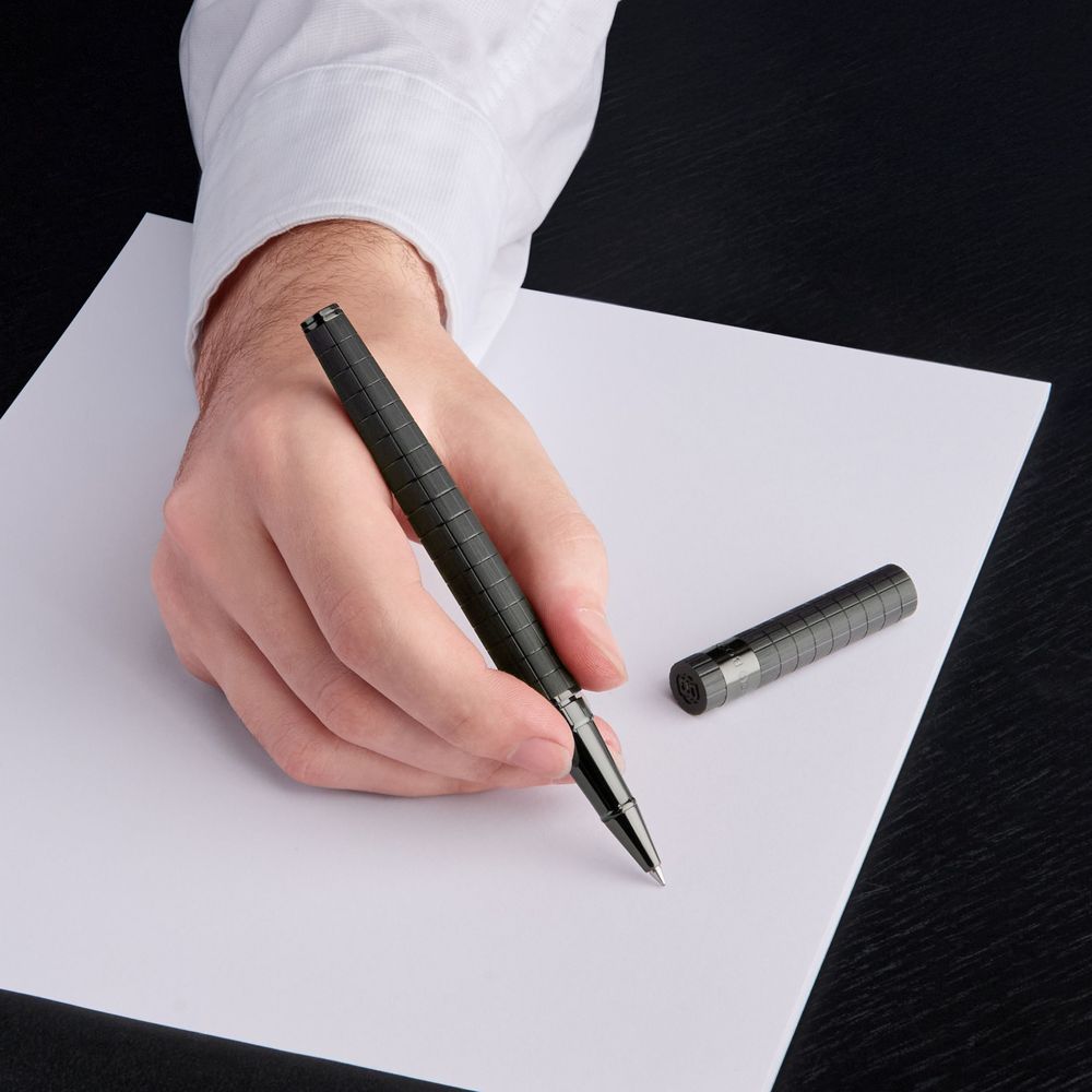 Силуэт пишущего инструмента LOOP сочетает в себе решительно активные и современные элементы дизайна, создавая оптимальные условия для письма. В этом новом издании, вдохновленном архитектурой Баухауса, на матовую алюминиевую поверхность нанесен яркий геометрический узор в виде сетки. Сочетание мотива и текстуры придает изделию элегантный графический акцент, предлагая свежий визуальный элемент, который подчеркивает динамичную форму ручки. В качестве завершающего штриха на верхней части нанесен логотип с двойной буквой B.