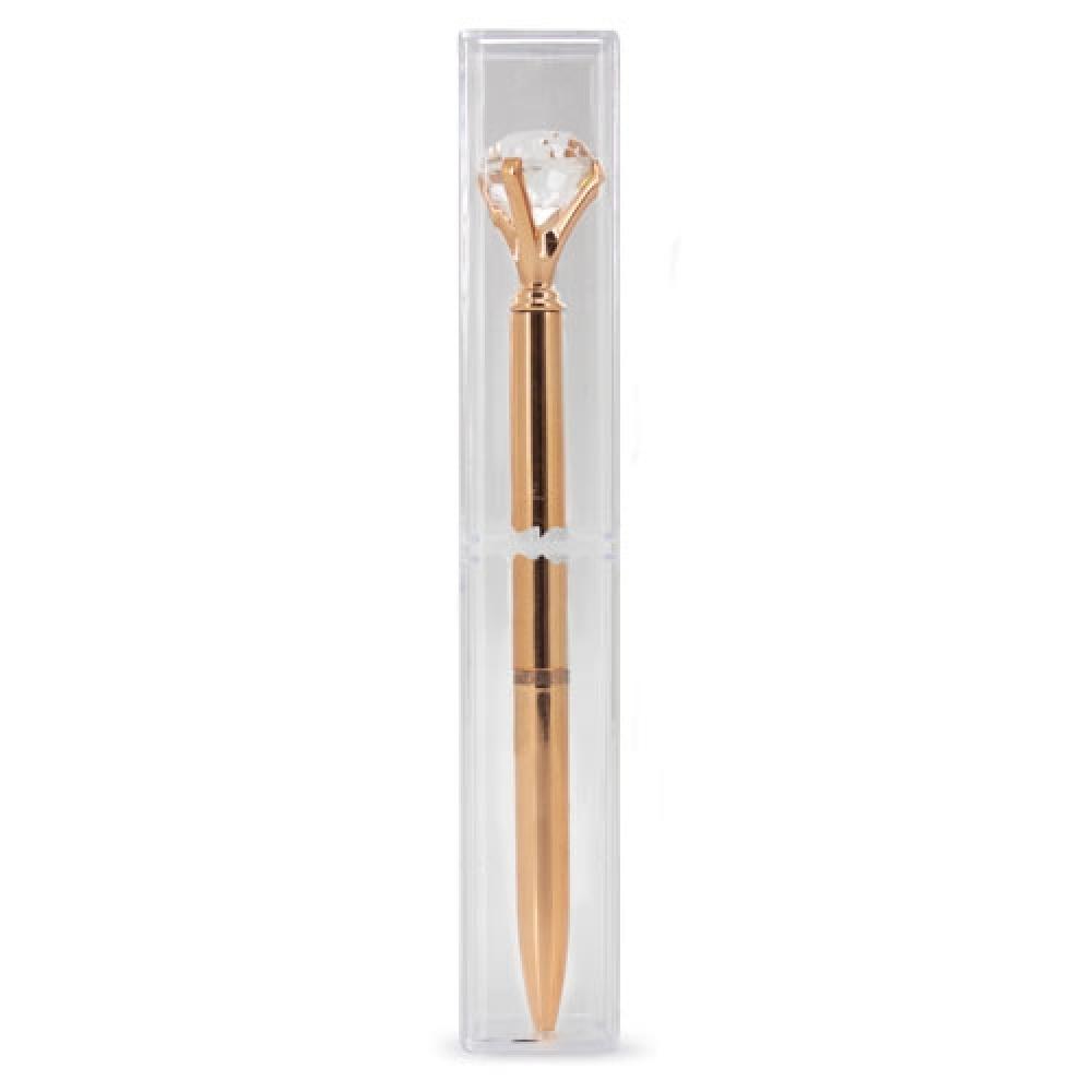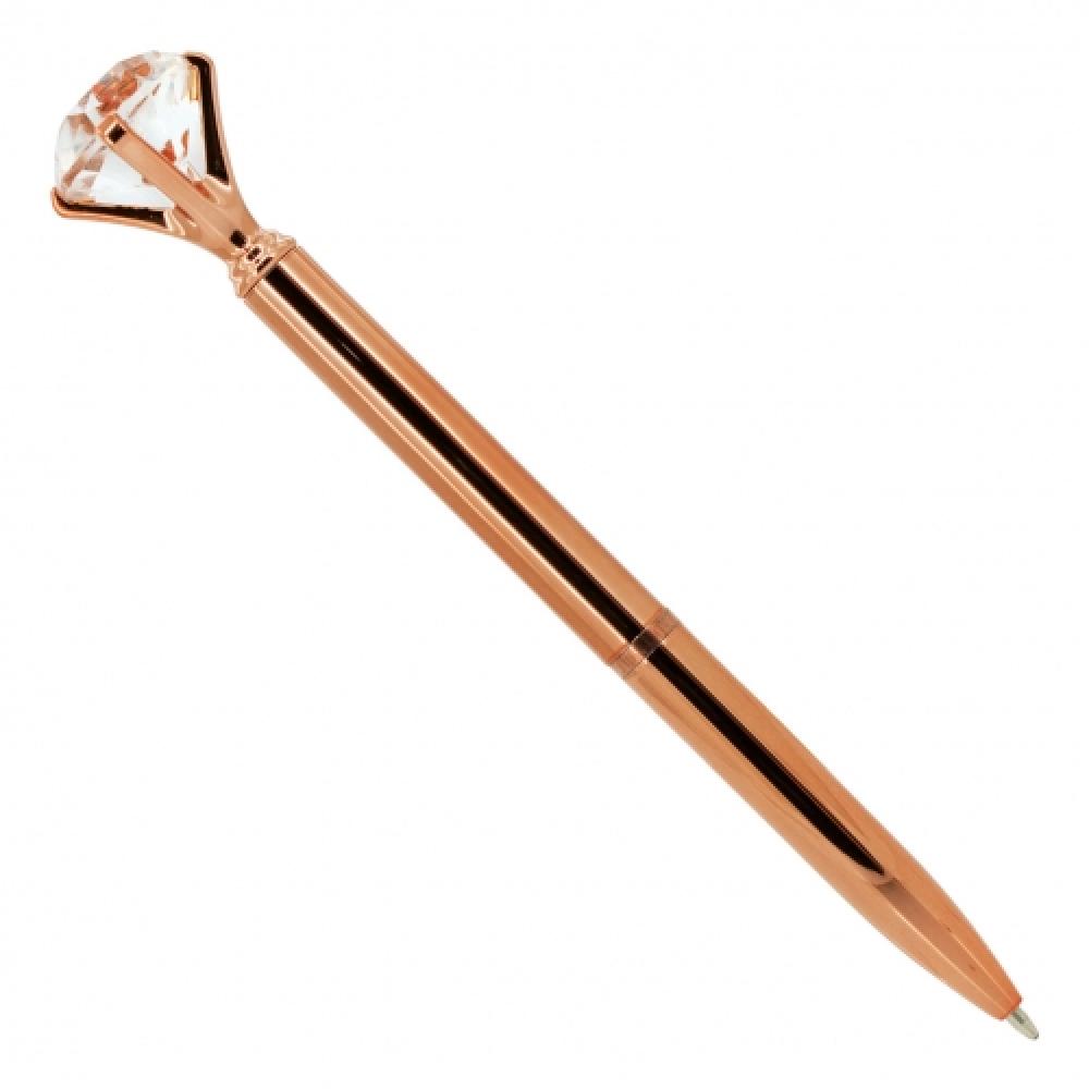 Эффектная и оригинальная металлическая ручка в элегантных цветах: золото, серебро и розовое золото. Её конец украшен декорацией, имитирующей крупный бриллиант.