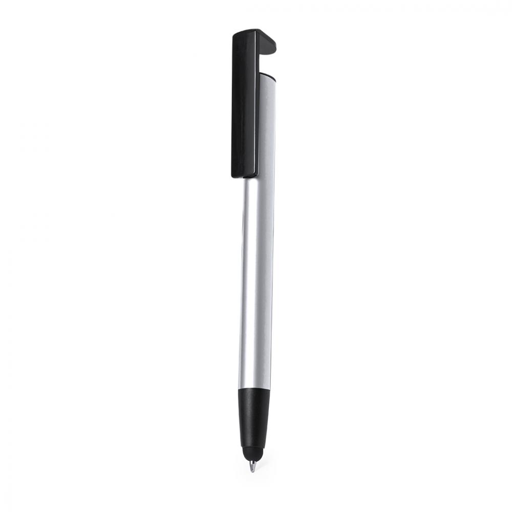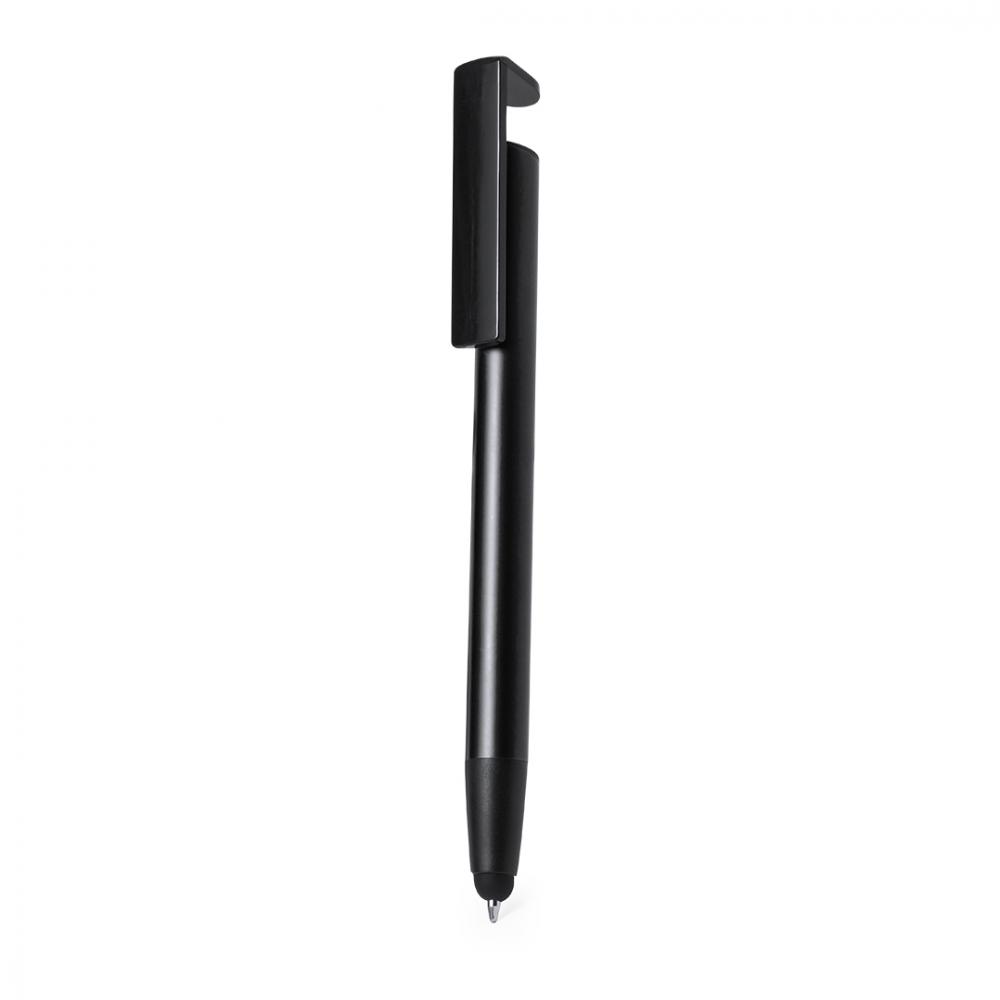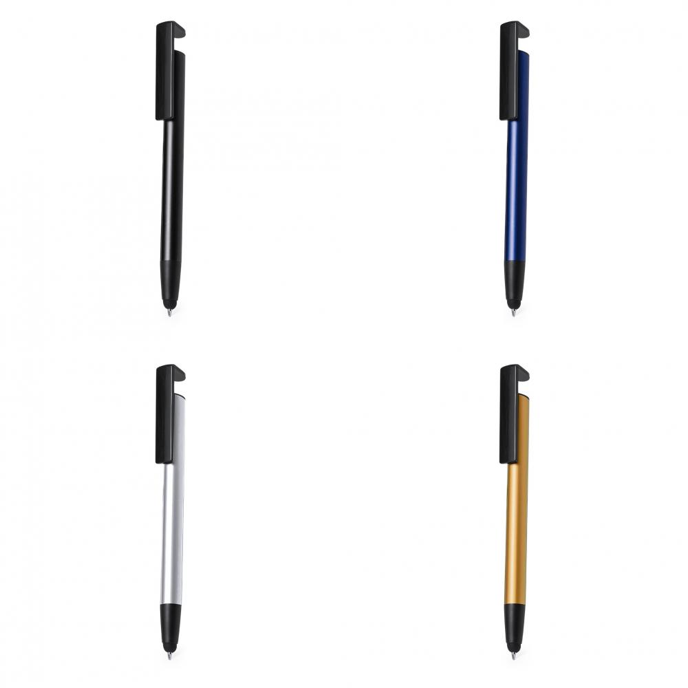 Шариковая ручка с кнопочным механизмом, изготовленная из прочного алюминия. Со встроенным мобильным держателем в клипсе и гладким корпусом в нескольких цветах металлик. Выполнена синими чернилами и упакована в пакет из переработанного материала.