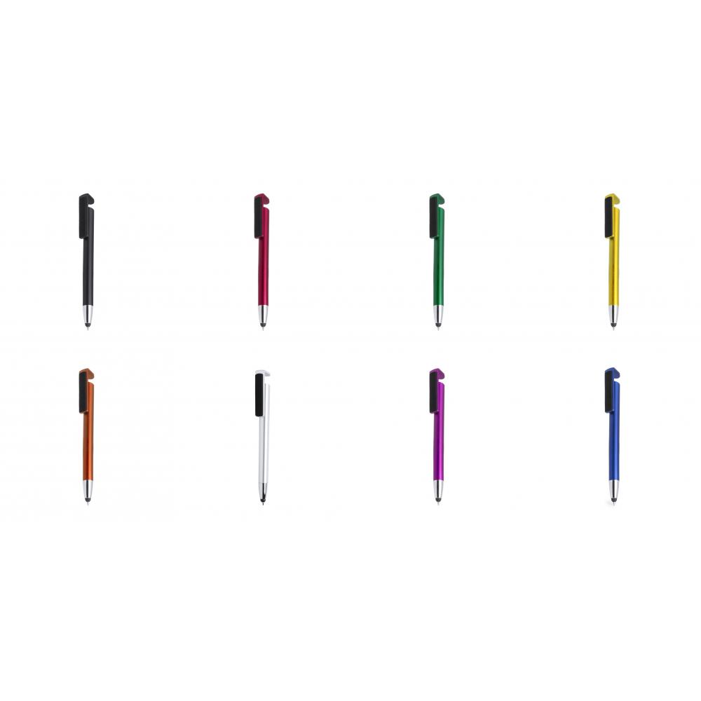 Особенности Многофункциональная шариковая ручка с нажимным механизмом ярких цветов и двухфункциональным зажимом, специально разработанная для использования в качестве держателя для мобильных устройств, а также в качестве средства для очистки экрана. С корпусом с металлической отделкой, специально разработанным для тампопечати и использования черных чернил. Черными Чернилами. Средство Для Очистки Экрана Входит в комплект поставки