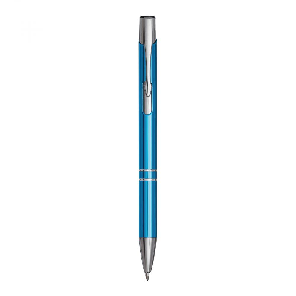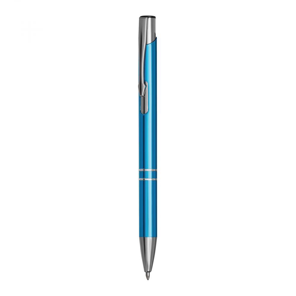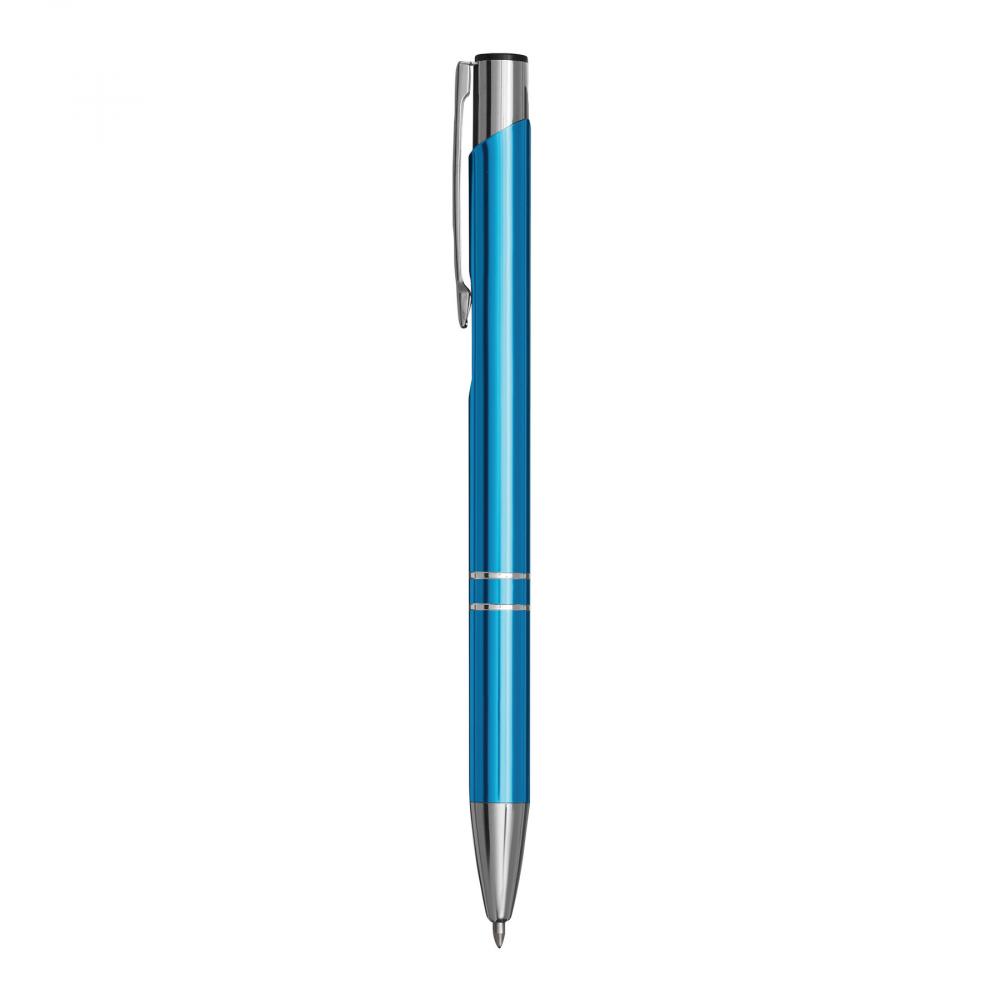 Алюминиевая шариковая ручка TUCSON: с блестящим металлическим стержнем, нажимным механизмом, большим стержнем, синими чернилами