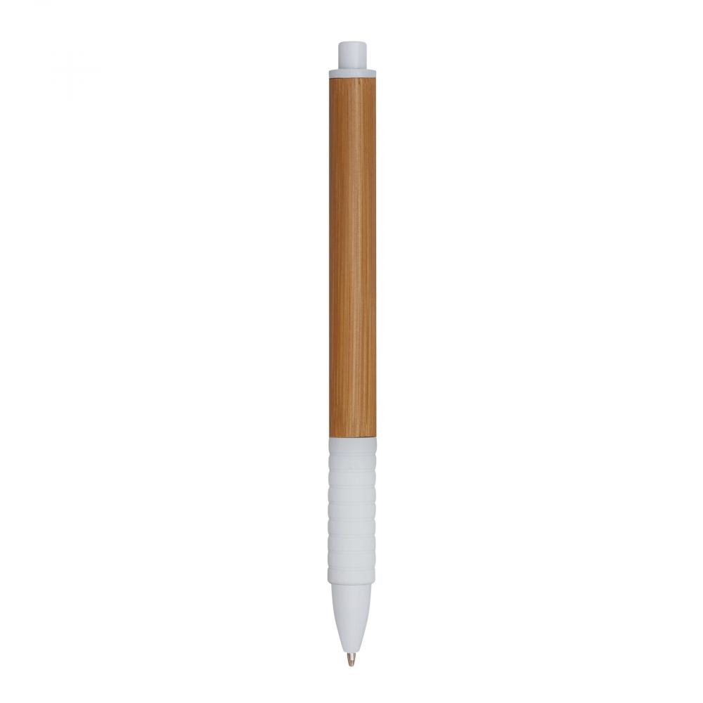 Шариковая ручка BAMBOO RUBBER: с прижимным механизмом, большой стержень, элегантный бамбуковый стержень, прорезиненная ручка - синие чернила