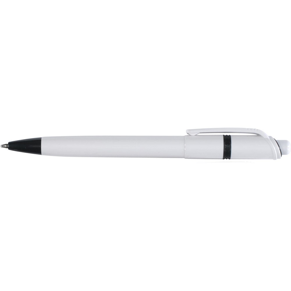 Шариковая ручка Ducal с белым корпусом, цветными акцентами, пишет синим цветом, оснащена немецким документальным чернилами, изготовлена из пластика ABS, никеля и металла.