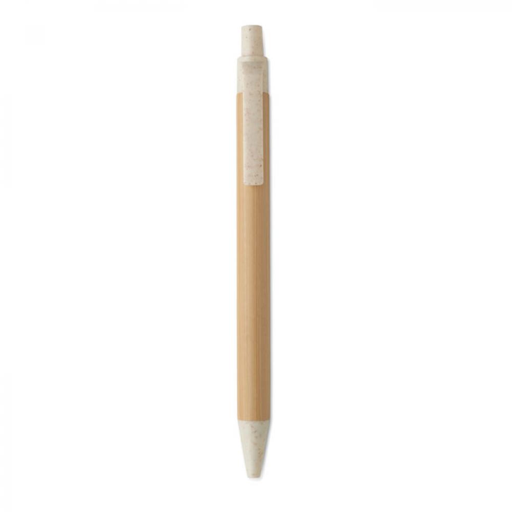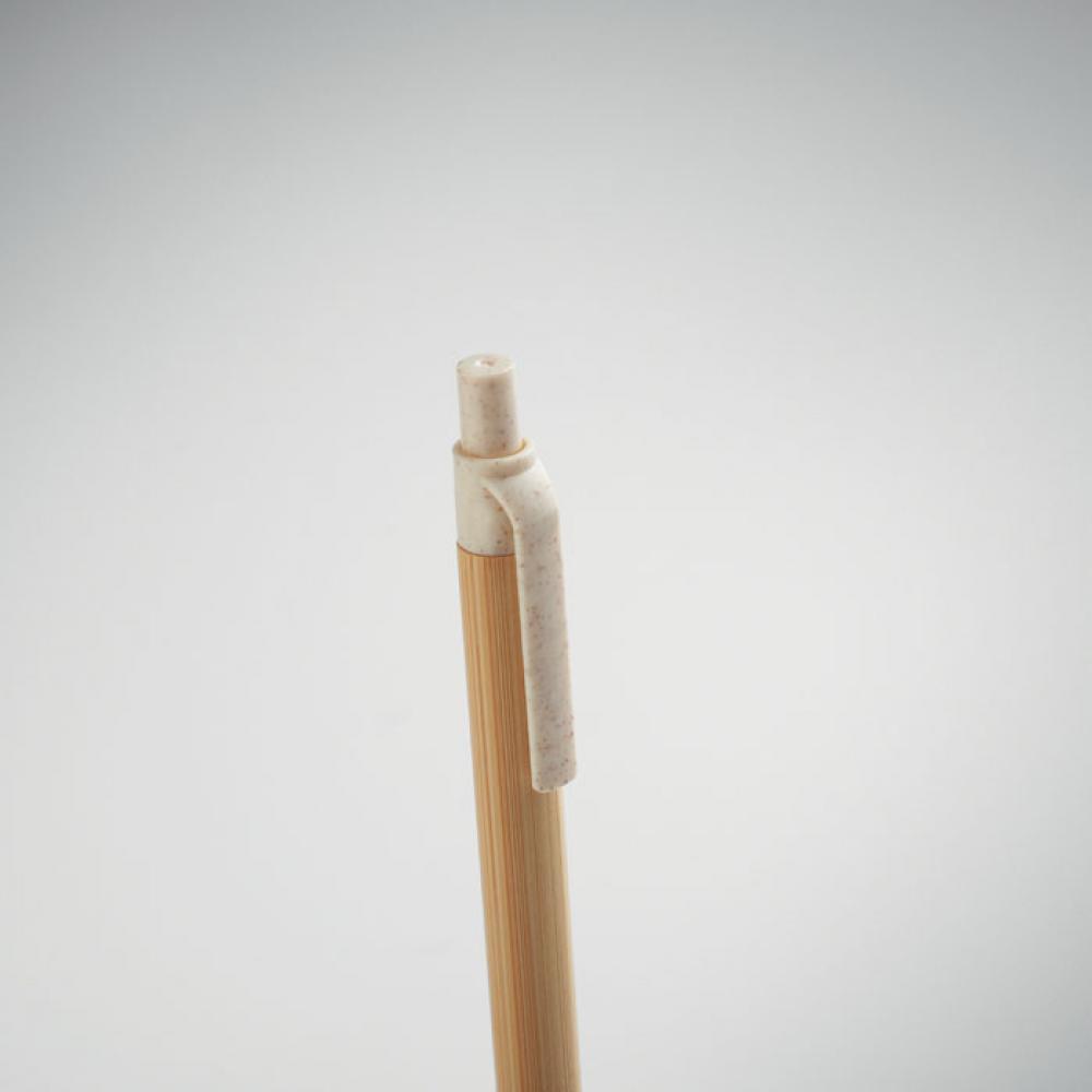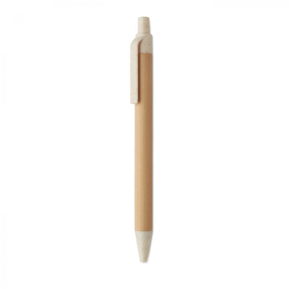 Кнопочная шариковая ручка из бамбука, фурнитура из пшеничной соломы (50%) и пластика (50%). Синие чернила. FSC 100% | N5.7 | FSC-C213206