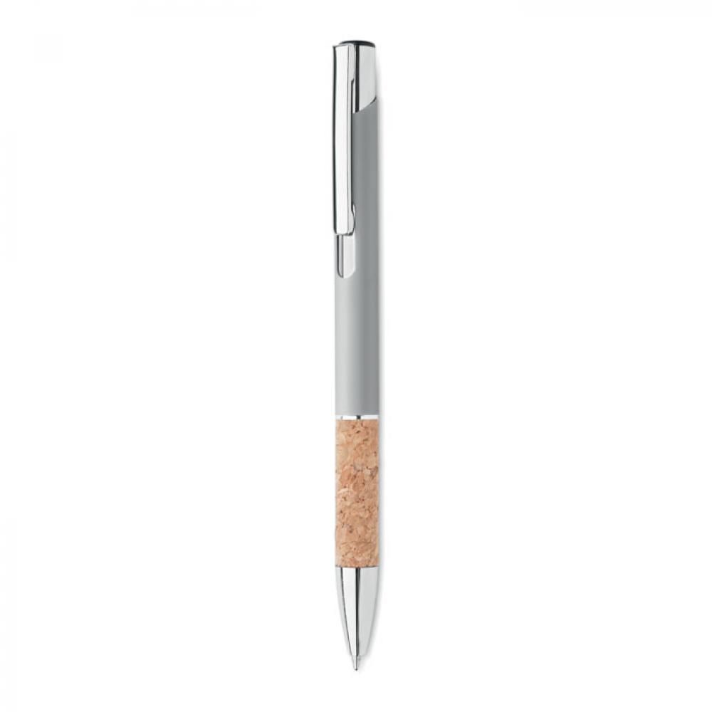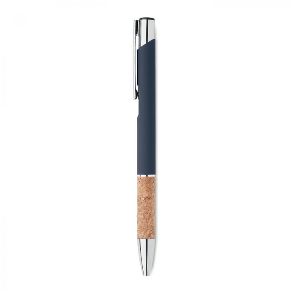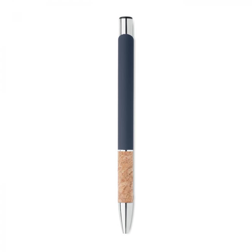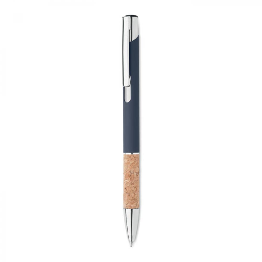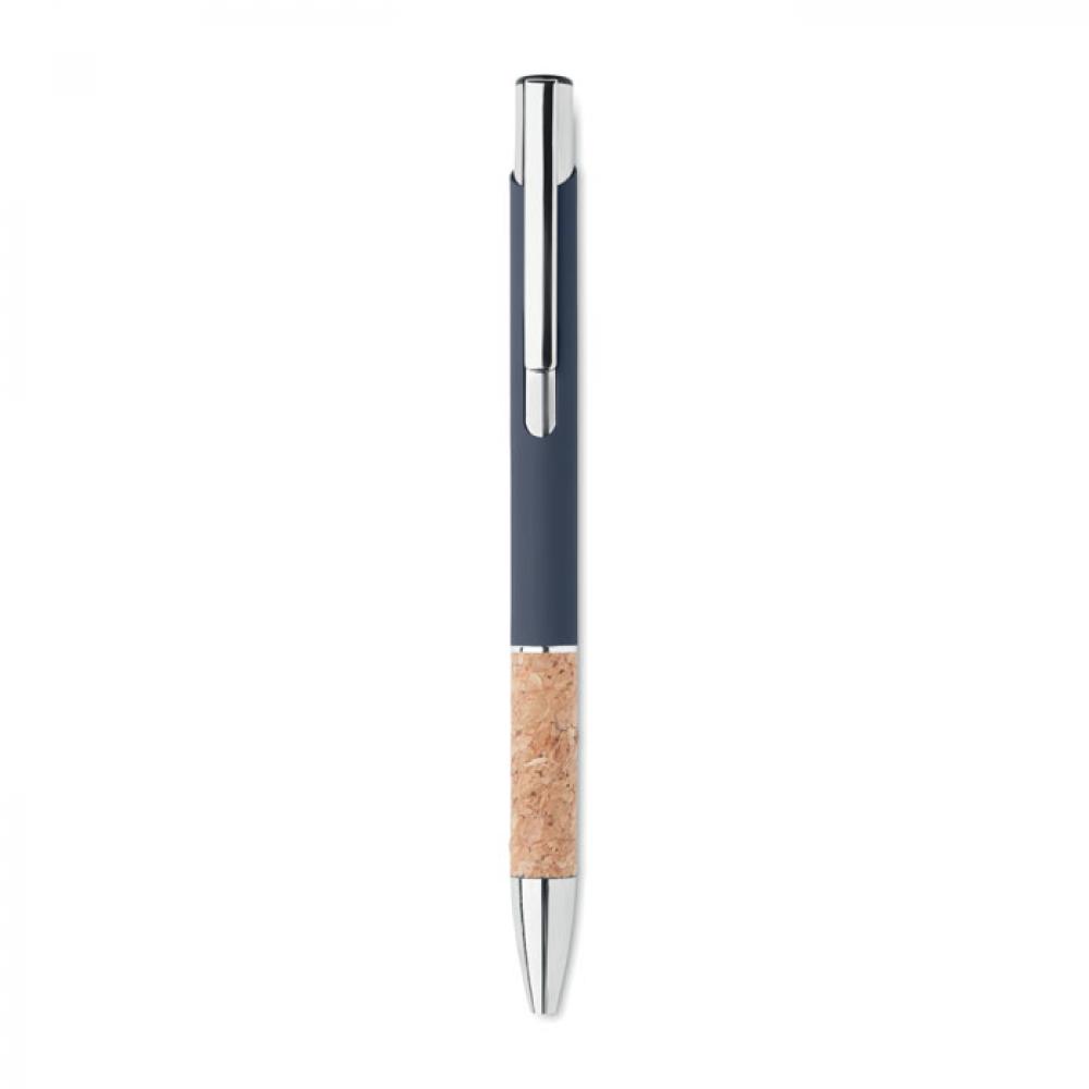 Кнопочная ручка из алюминия и пробки. Синие чернила.
