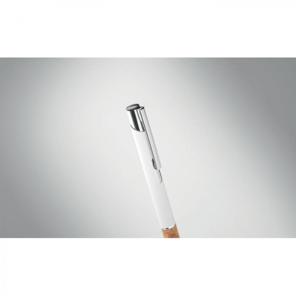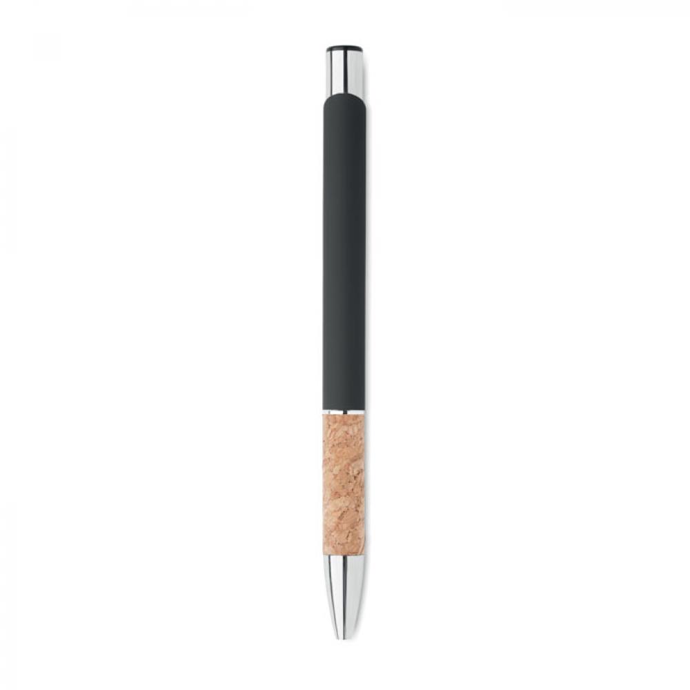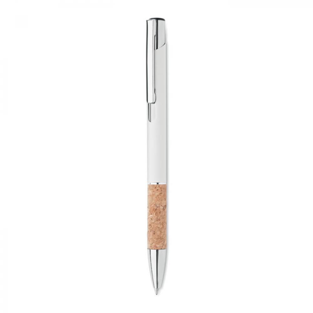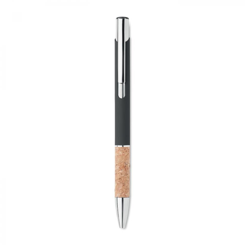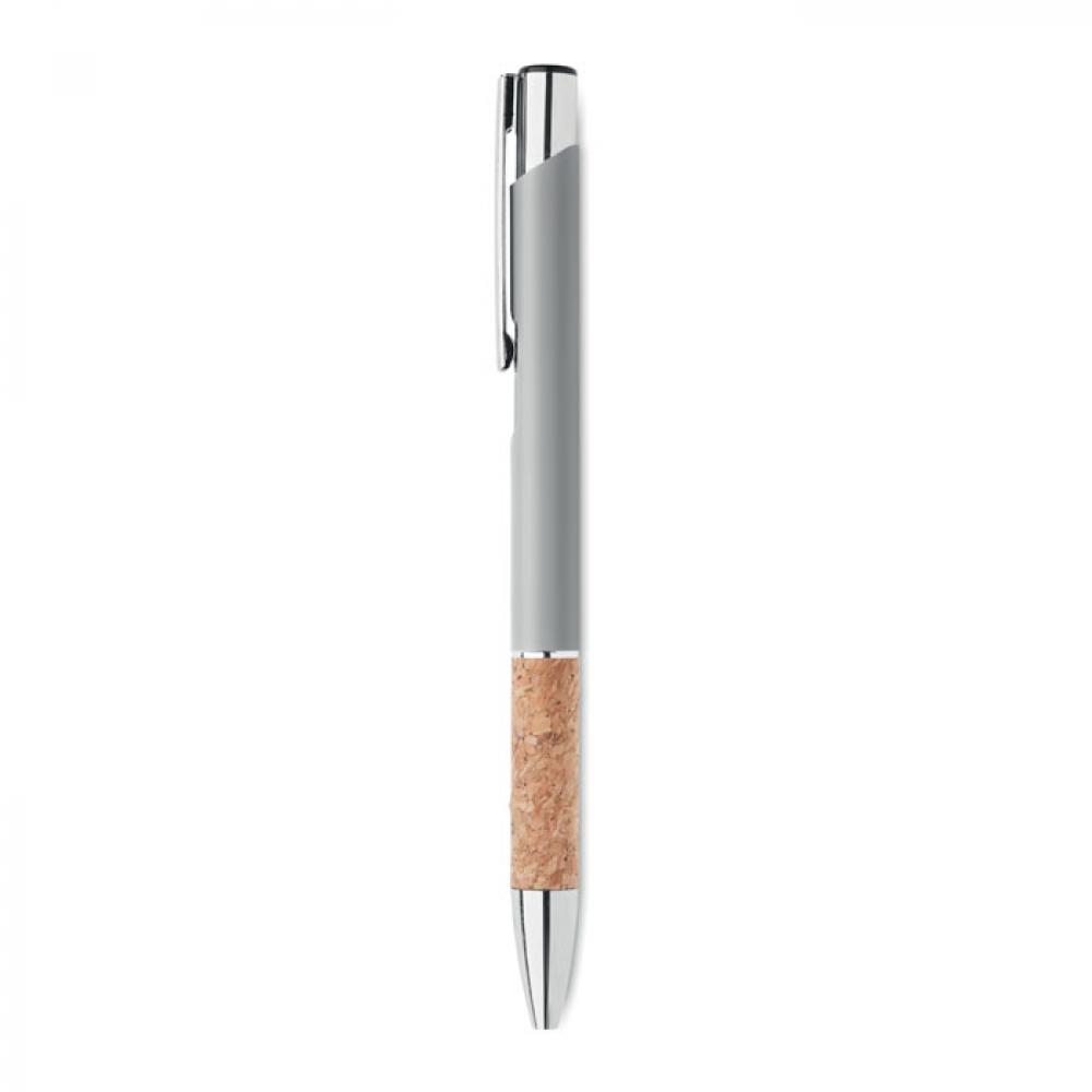 Кнопочная ручка из алюминия и пробки. Синие чернила.