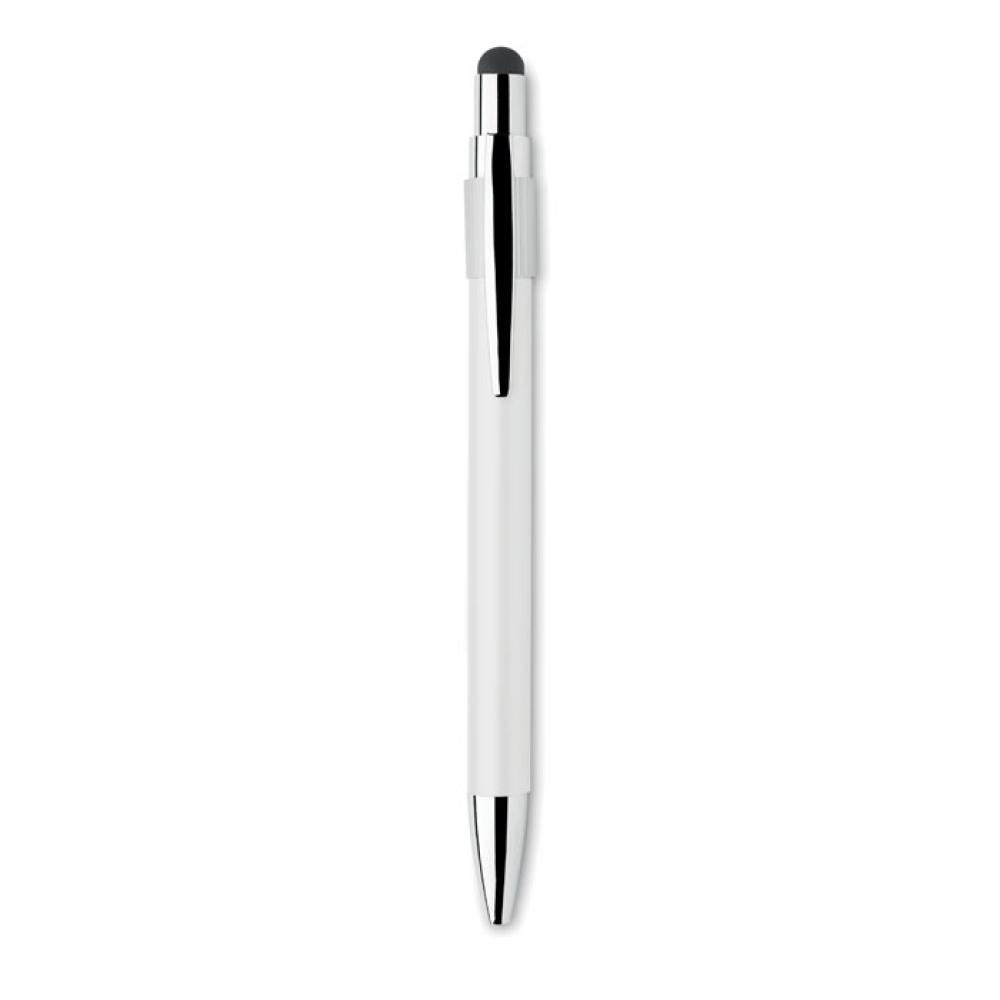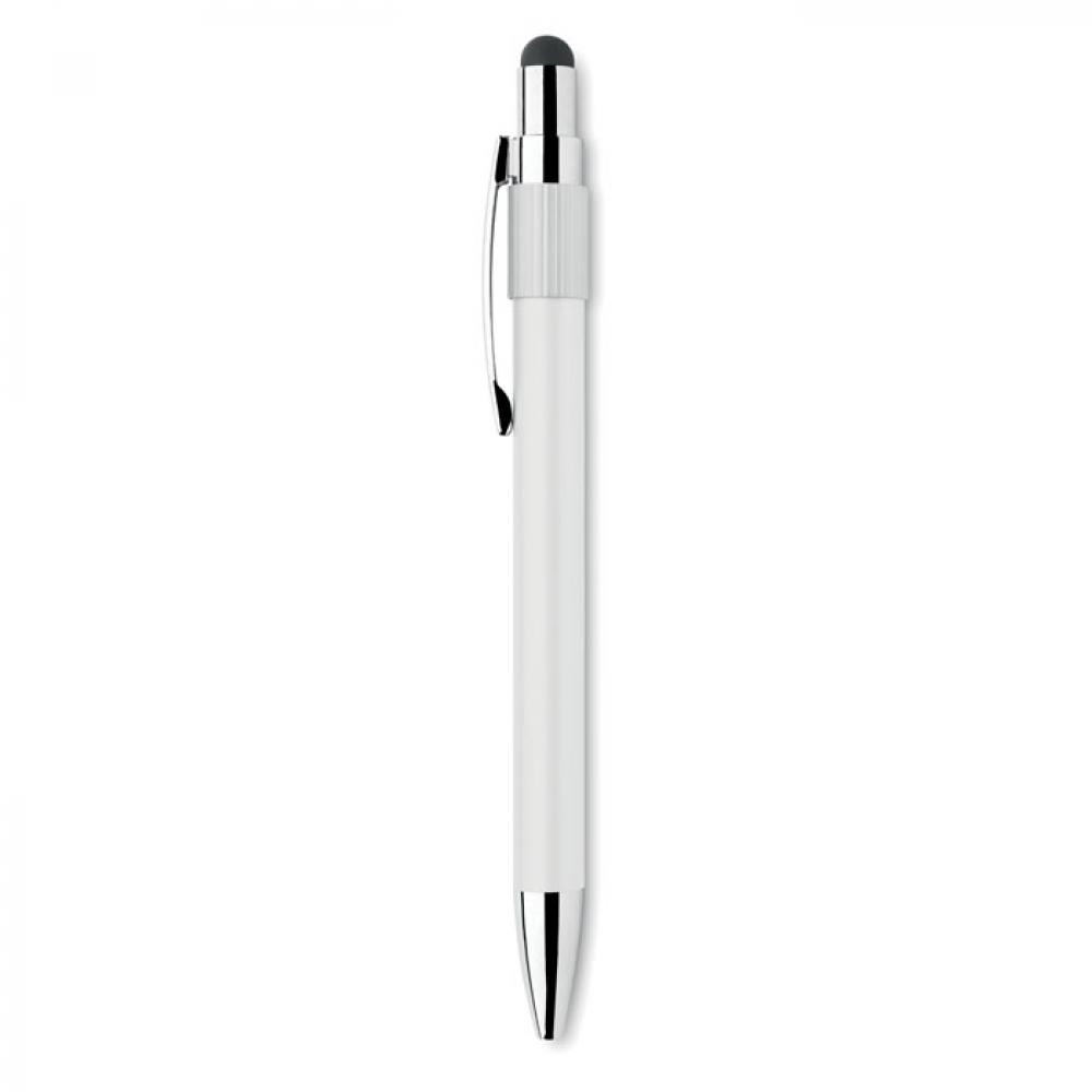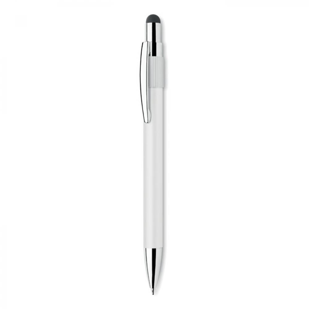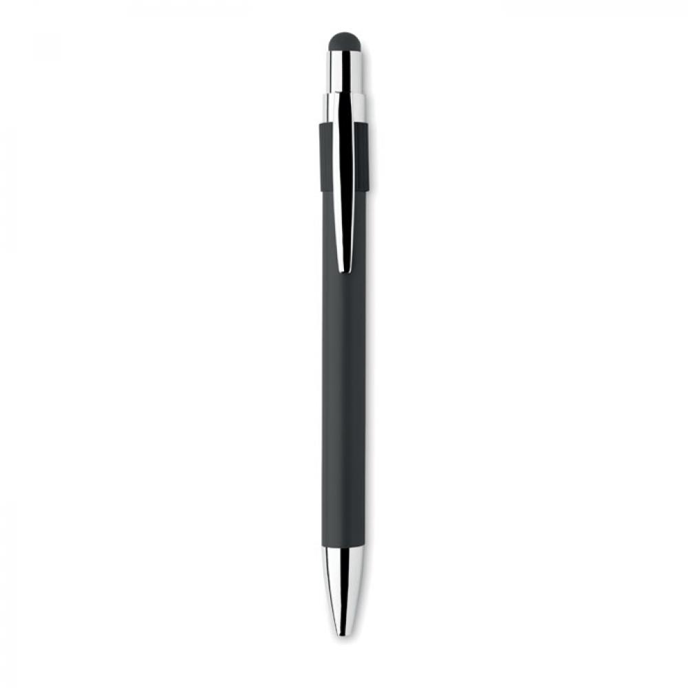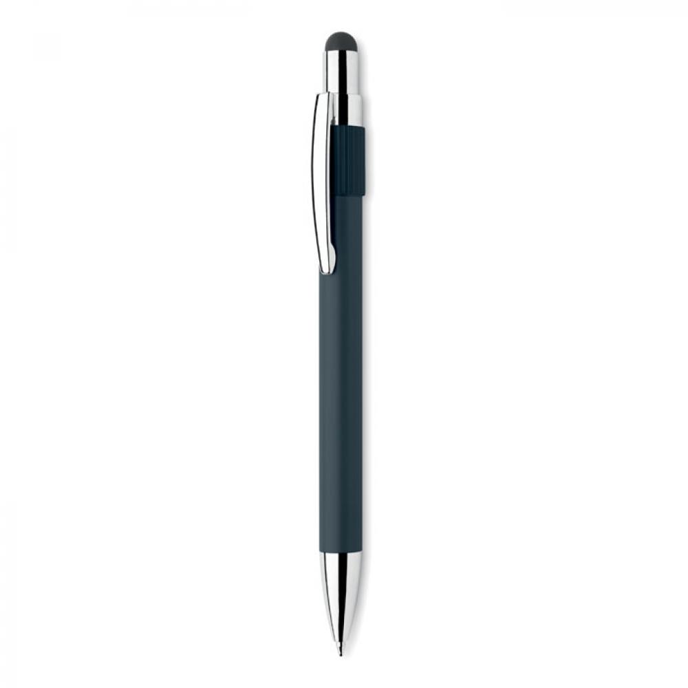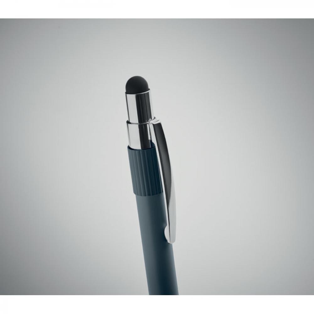 Шариковая ручка из переработанного алюминия со стилусом и встроенным антистресс спиннером. Синие чернила.