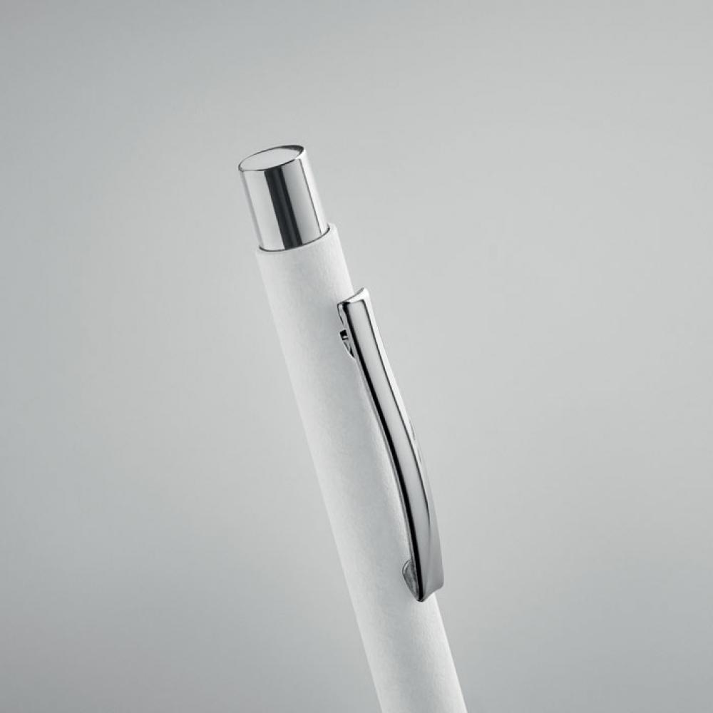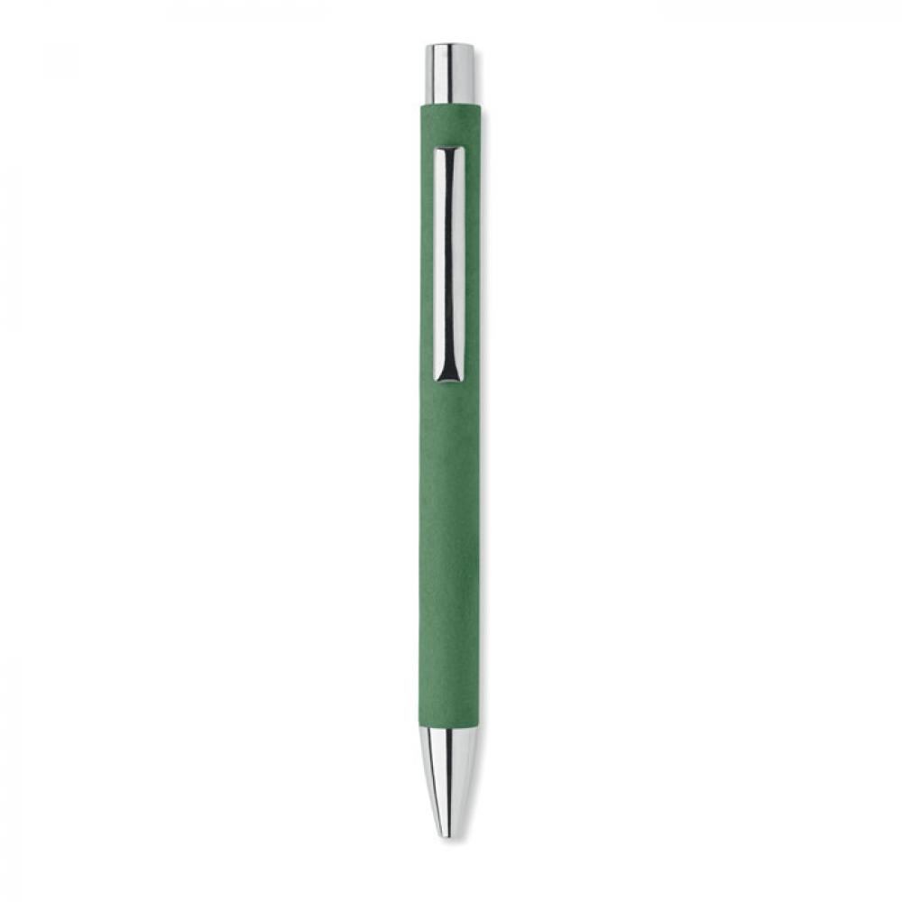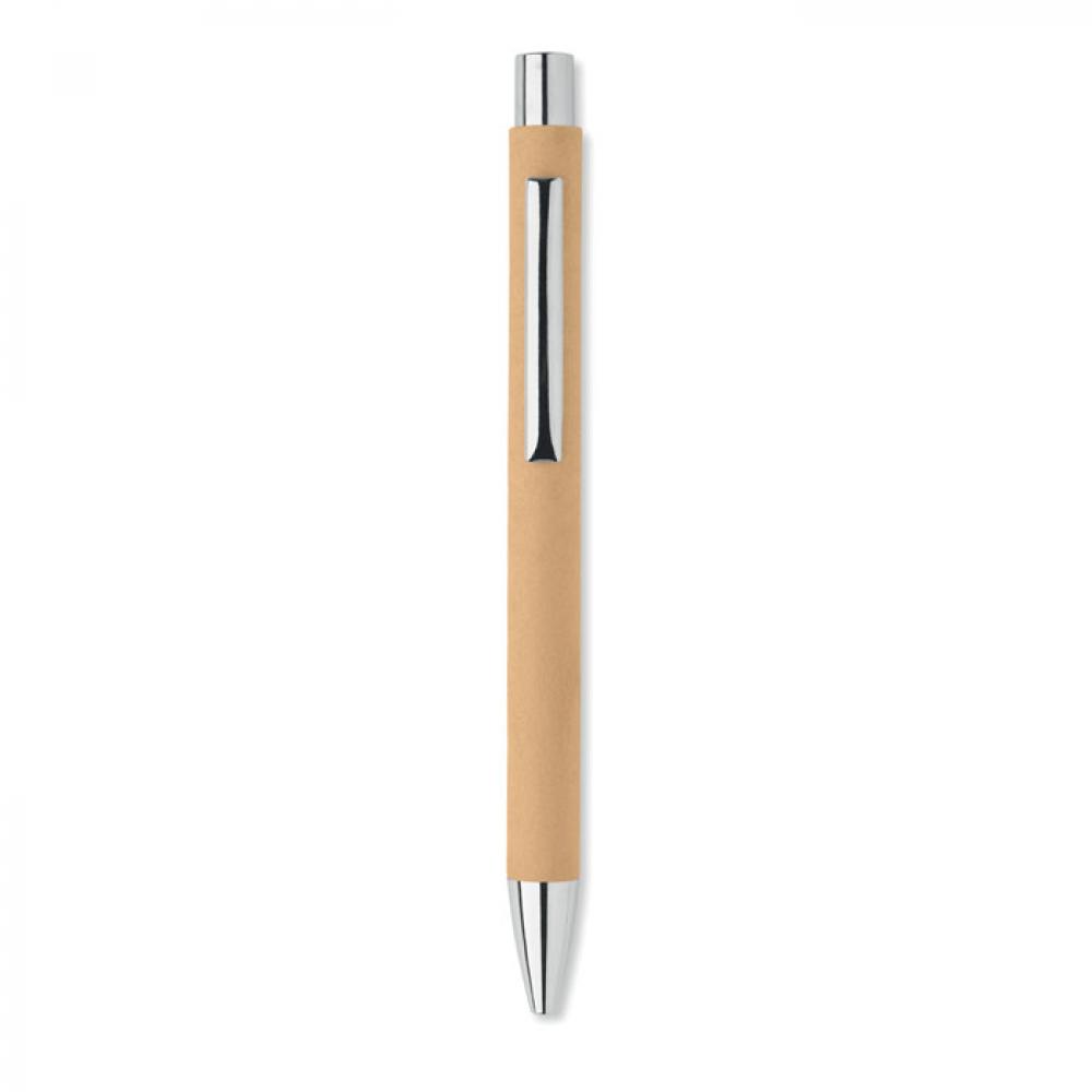 Кнопочная шариковая ручка из переработанной бумаги с металлическим клипом и пластиковой фурнитурой. Синие чернила. FSC®-certified | FSC RECYCLED, P9, FSC-C213206