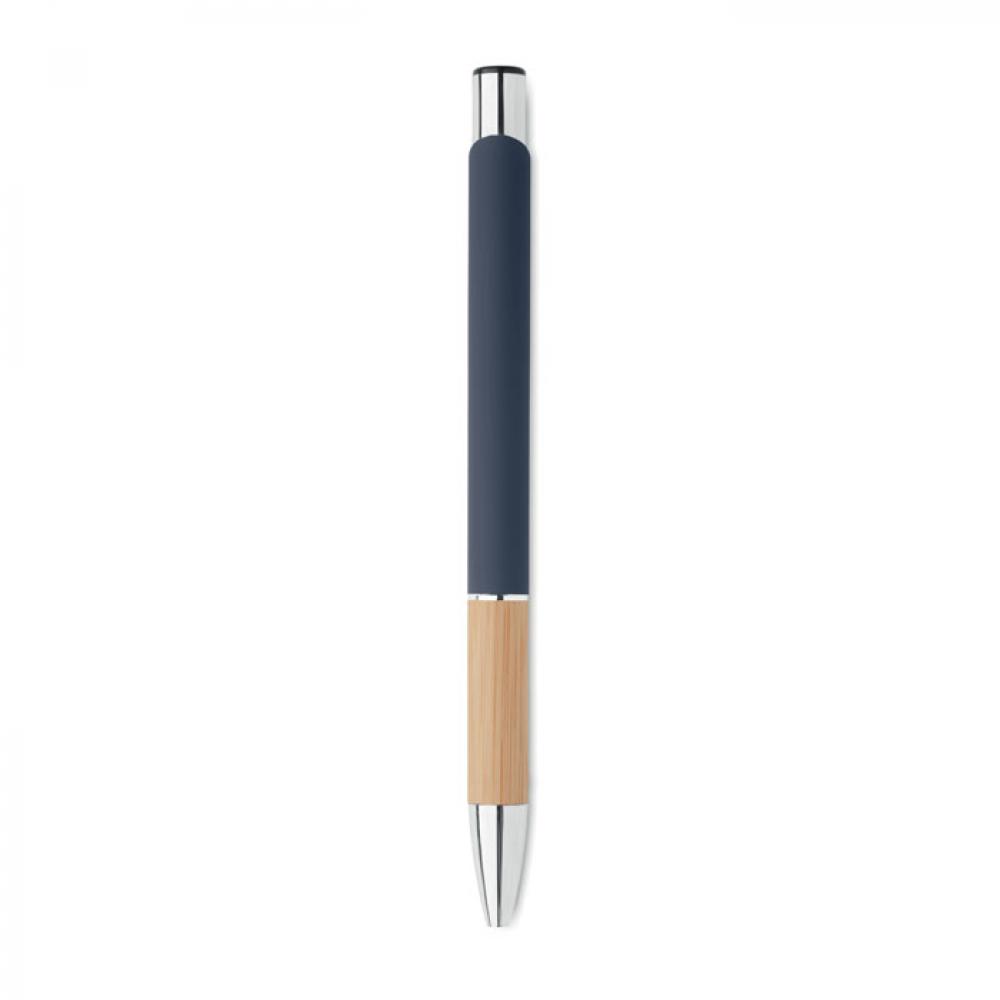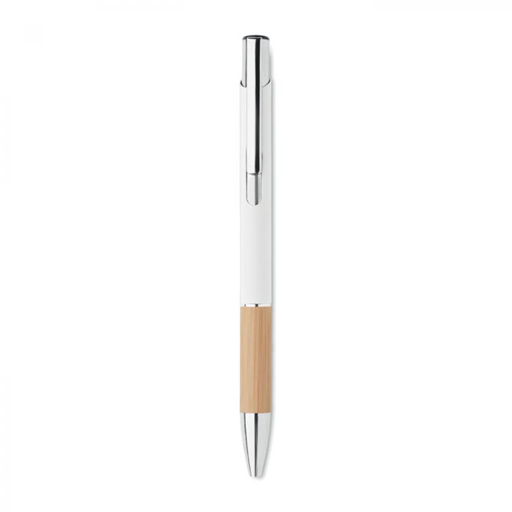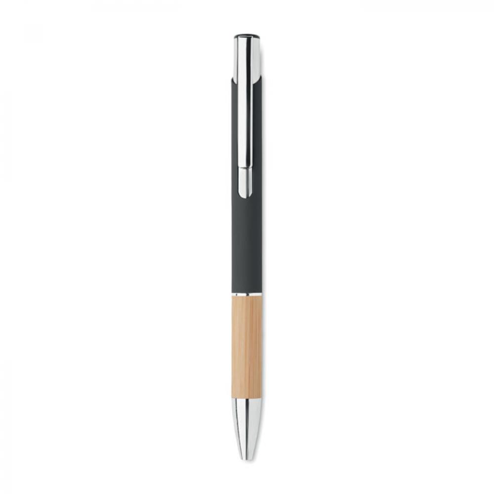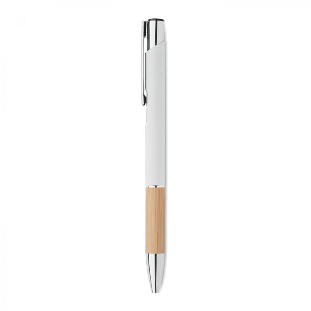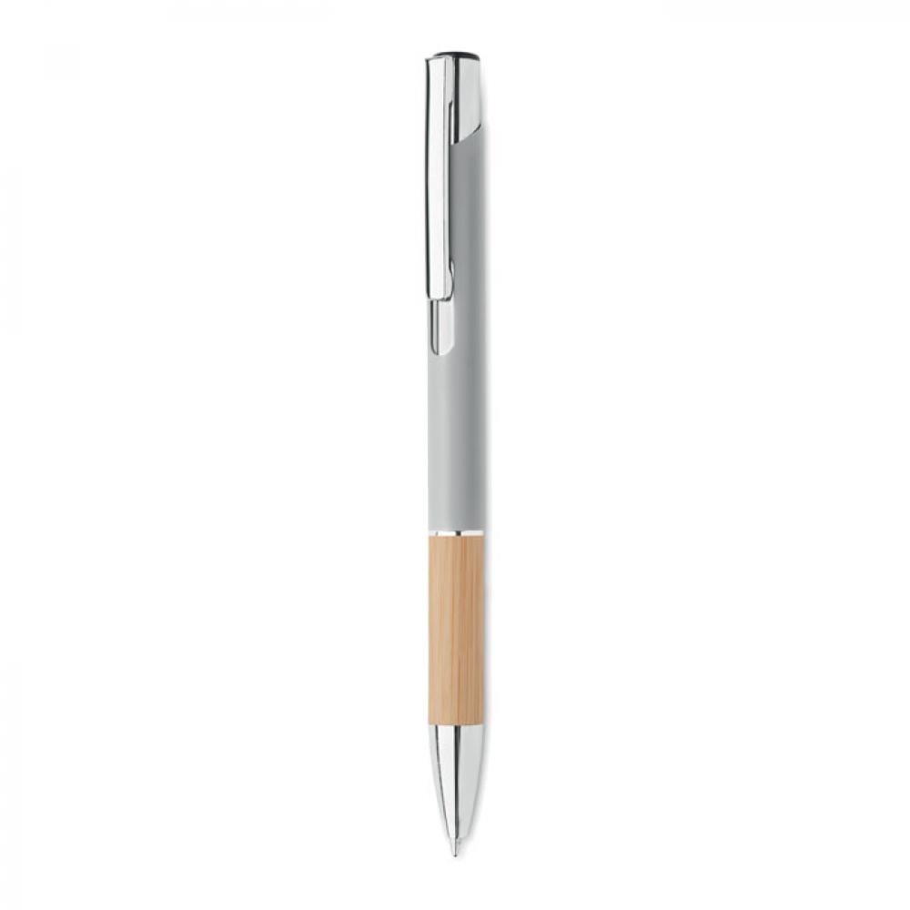 Кнопочная ручка из алюминия и бамбука. Синие чернила.