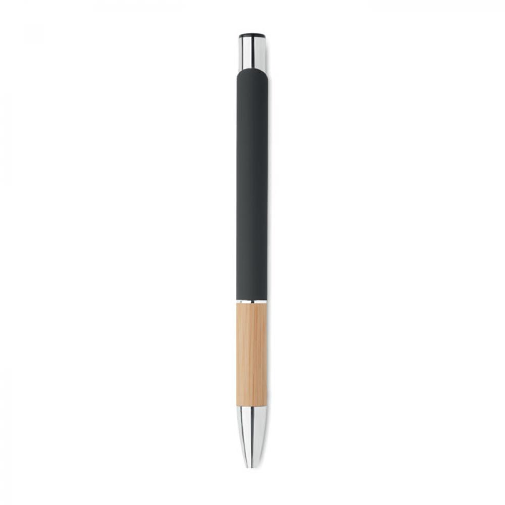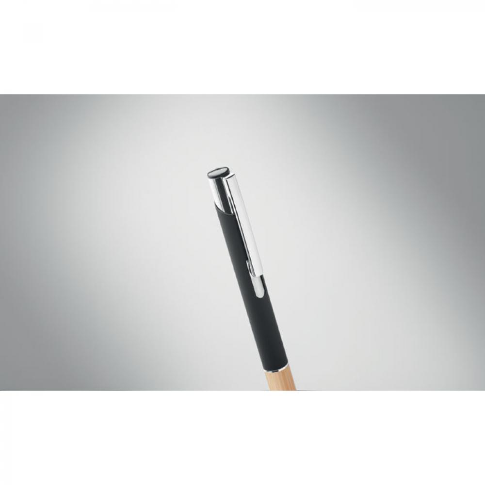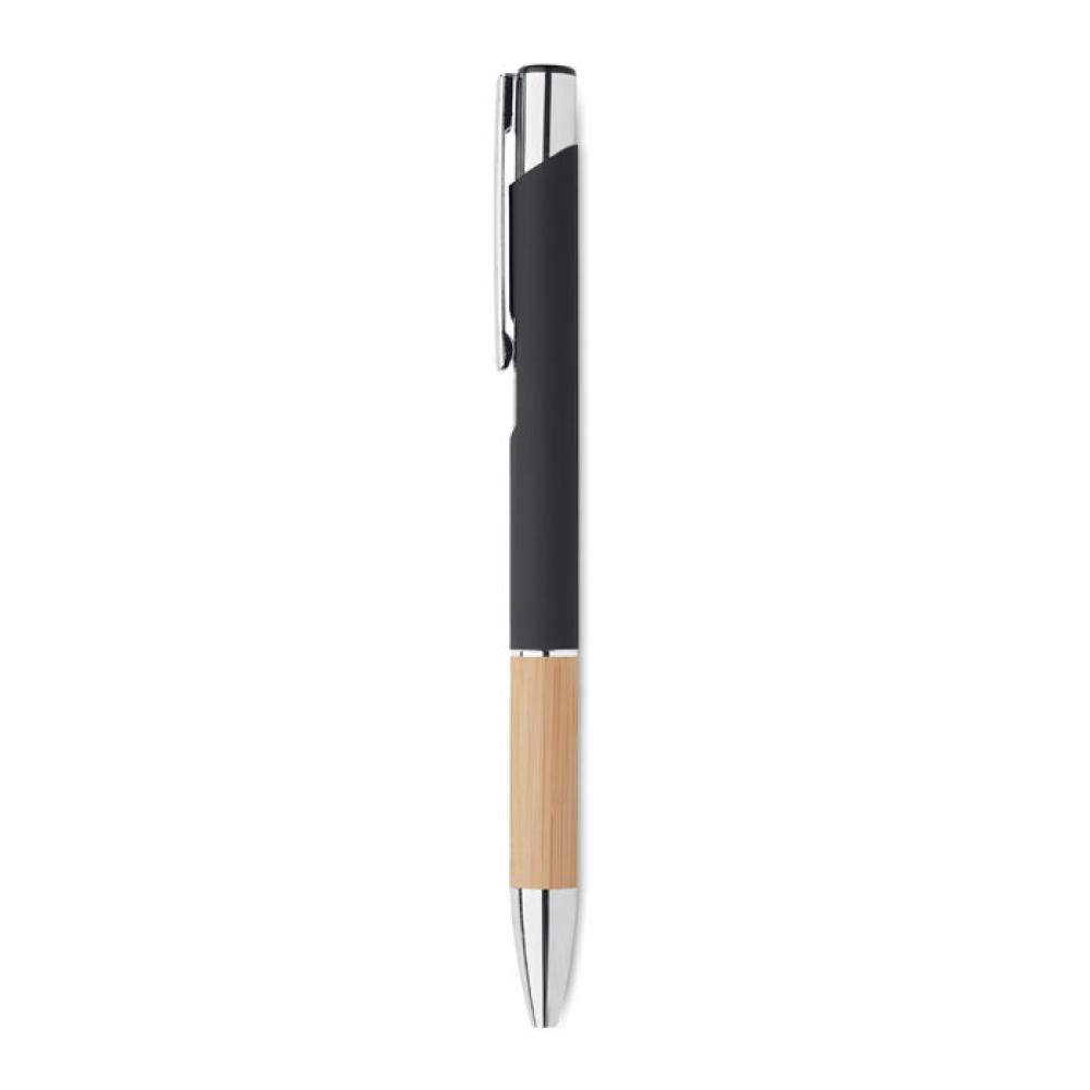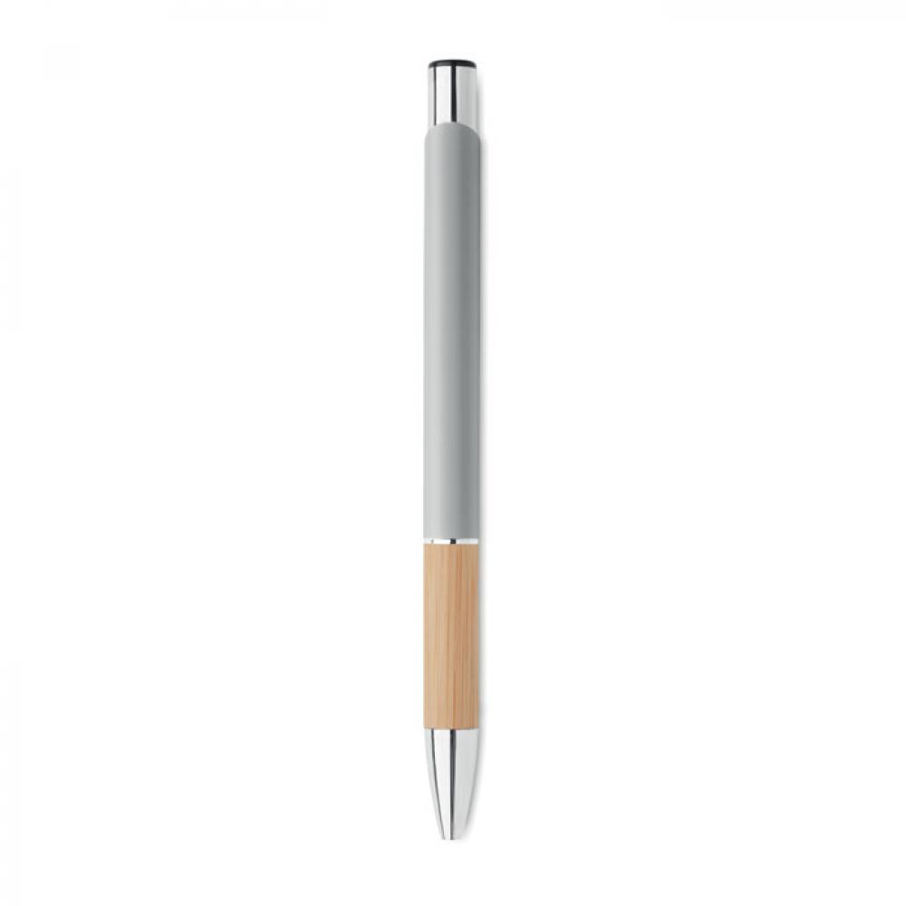 Кнопочная ручка из алюминия и бамбука. Синие чернила.