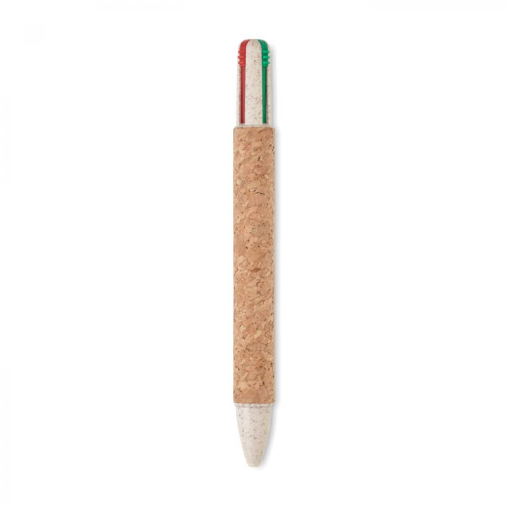 4-цветная шариковая ручка из пробки с элементами из пшеничной соломы (50%) и пластика (50%). Цвета чернил: красный, зеленый, синий и черный.