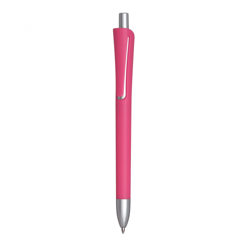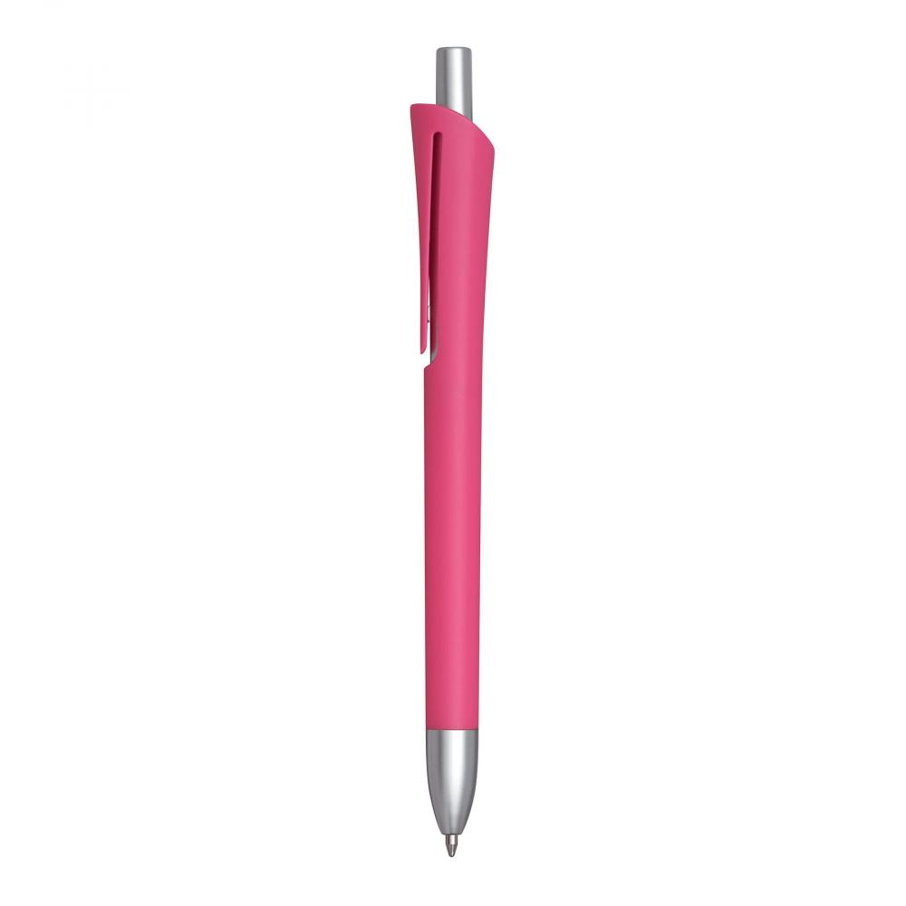 Ручка шариковая OREGON: с прижимным механизмом, пластиковый стержень, с матово-серебряными накладками под зажимом, а также на кликере и наконечнике, длина письма ок. 800 - 1.000 м, черные чернила