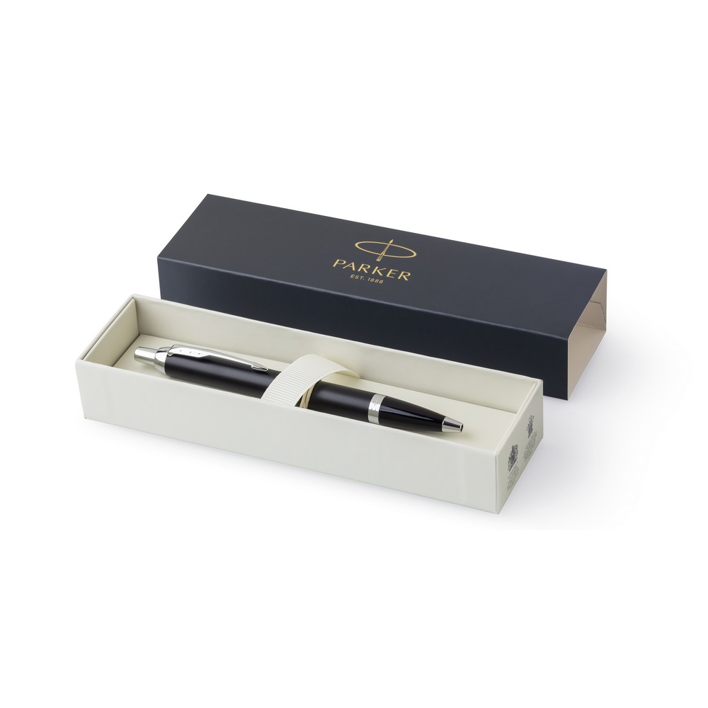 Шариковая ручка Parker IM, пишет синим цветом, упакована в подарочную коробку, изделие изготовлено из металла.