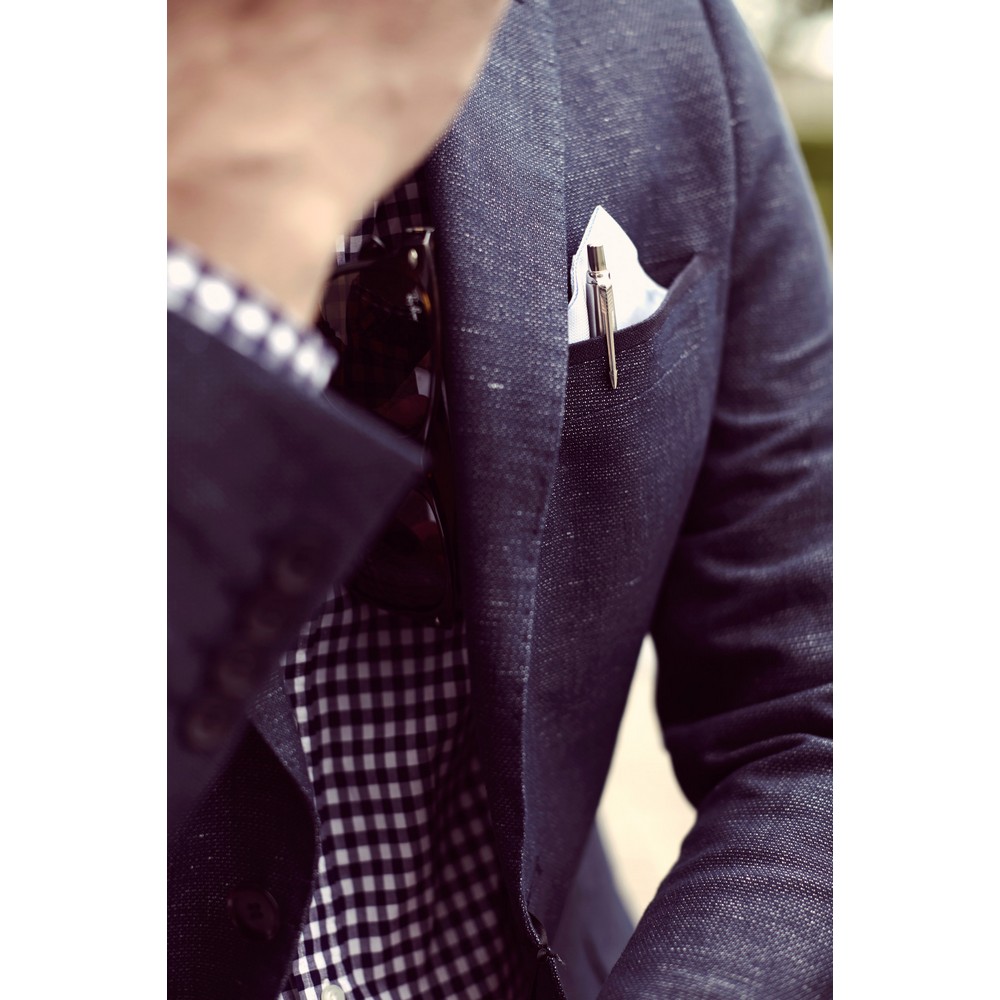 Шариковая ручка Parker Jotter Core, пишет синим цветом, упакована в подарочную коробку, изготовлена из металла и нержавеющей стали.